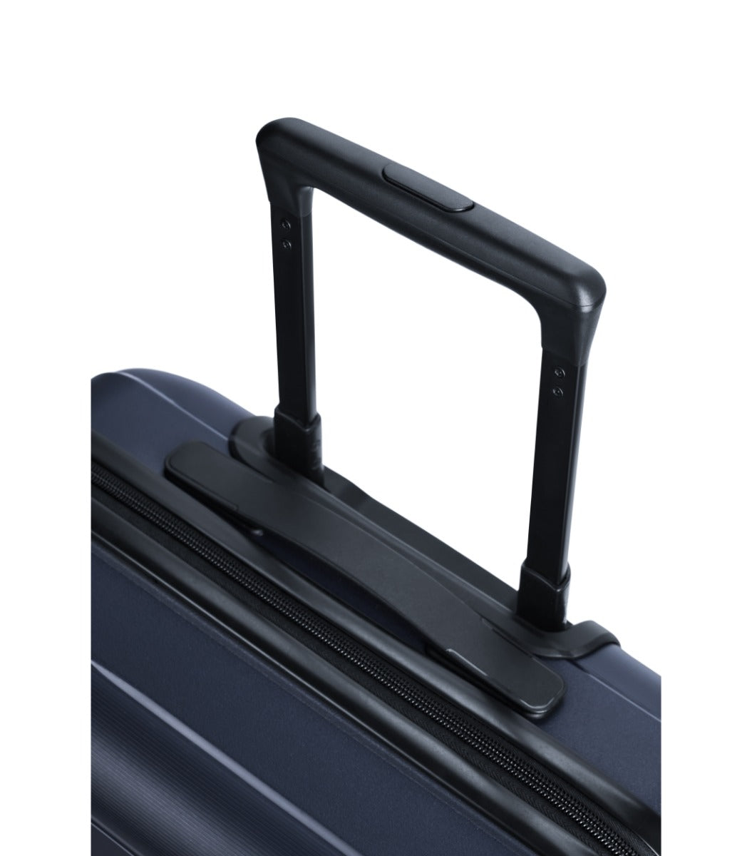 Kufferten er udstyret med et multitrins teleskophåndtag lavet af stærkt og let anodiseret aluminium. De integrerede bærehåndtag på toppen og siden gør det nemt at løfte kufferten.