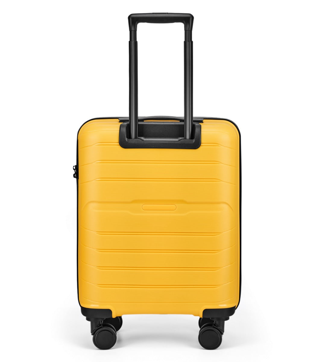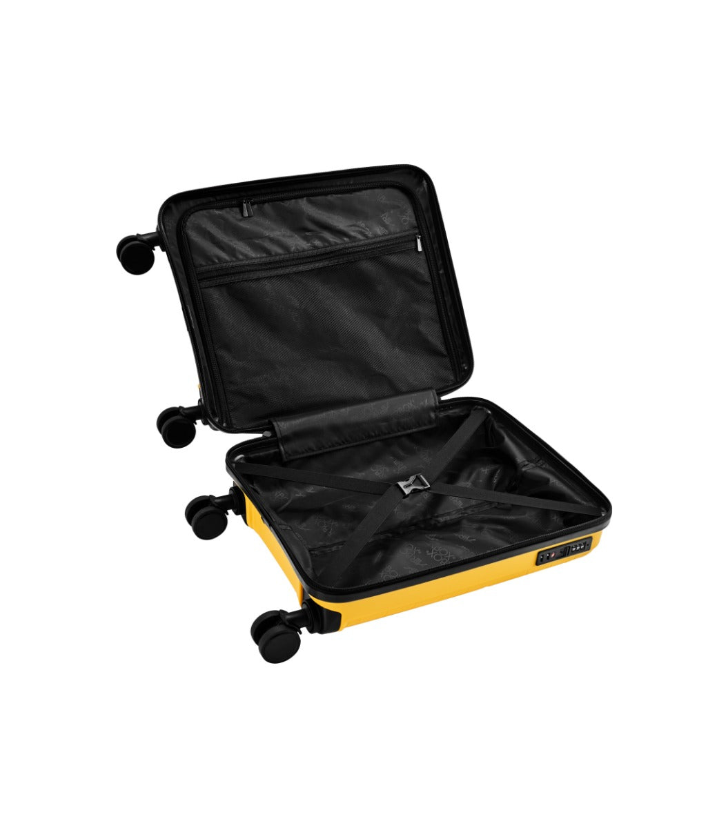 Det flade, integrerede design sikrer, at håndtagene ikke hænger fast i eksterne genstande under transport og håndtering. Kufferten er også udstyret med fire glatte og stille dobbelthjul med 360° rotation for nem manøvrering. Indvendigt har kufferten en integreret skillevæg med en lomme til organisering samt pakkestropper til at holde tøjet på plads.
