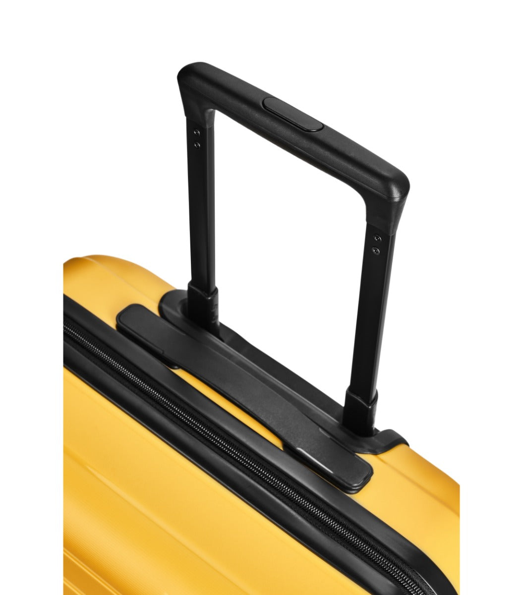 Kufferten er udstyret med et multitrins teleskophåndtag lavet af stærkt og let anodiseret aluminium. De integrerede bærehåndtag på toppen og siden gør det nemt at løfte kufferten.