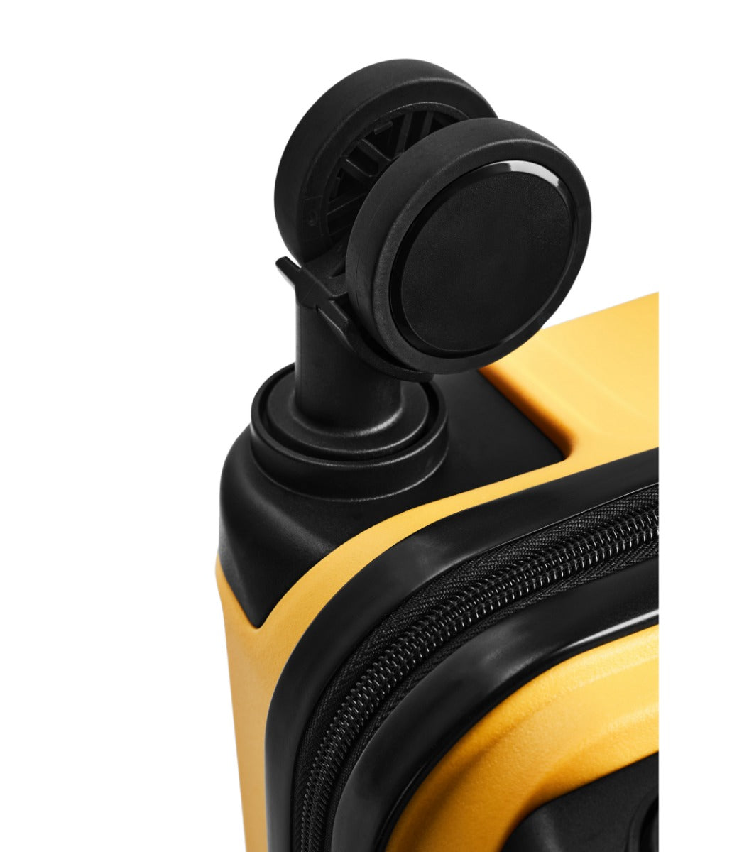 Denne kuffert er udstyret med 4 hjul. Dette giver en fordel, hvis du hovedsageligt skal transportere kufferten henover et jævnt terræn. Derudover giver det dig mulighed for at skubbe kufferten i stedet for at trække den.