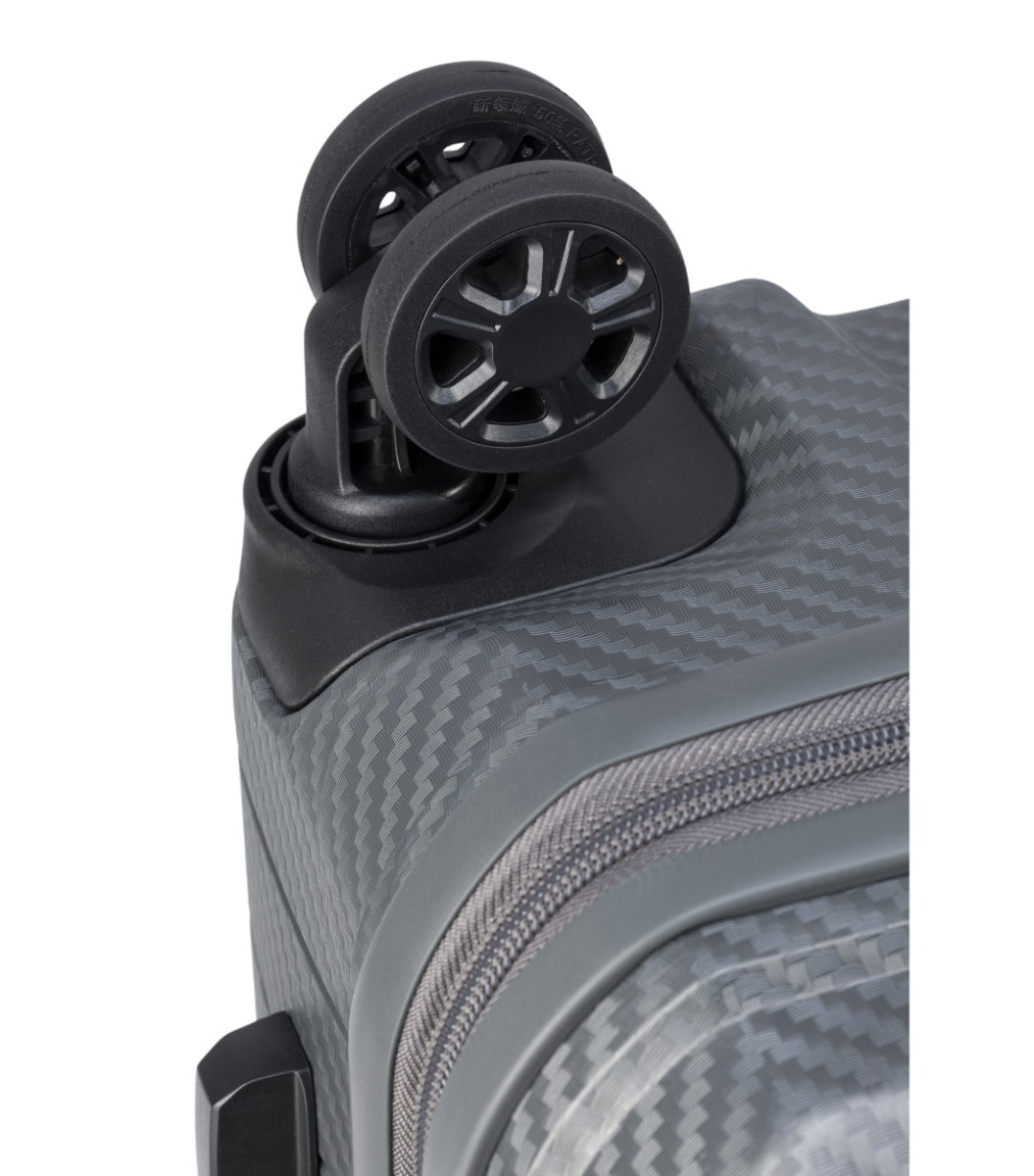 Denne kuffert er udstyret med 4 hjul. Dette giver en fordel, hvis du hovedsageligt skal transportere kufferten henover et jævnt terræn. Derudover giver det dig mulighed for at skubbe kufferten i stedet for at trække den.