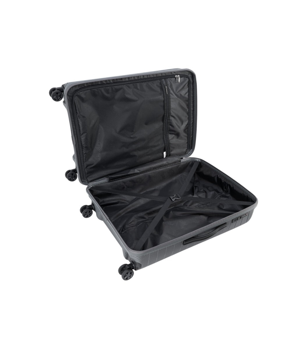 Denne kuffert er fremstillet i polypropylene. Materialet er ikke lige så stærkt som polycarbonat, men derimod rigtig let. Denne type kuffert er perfekt, hvis du vil rejse så let som muligt men samtidig have en holdbar kuffert.