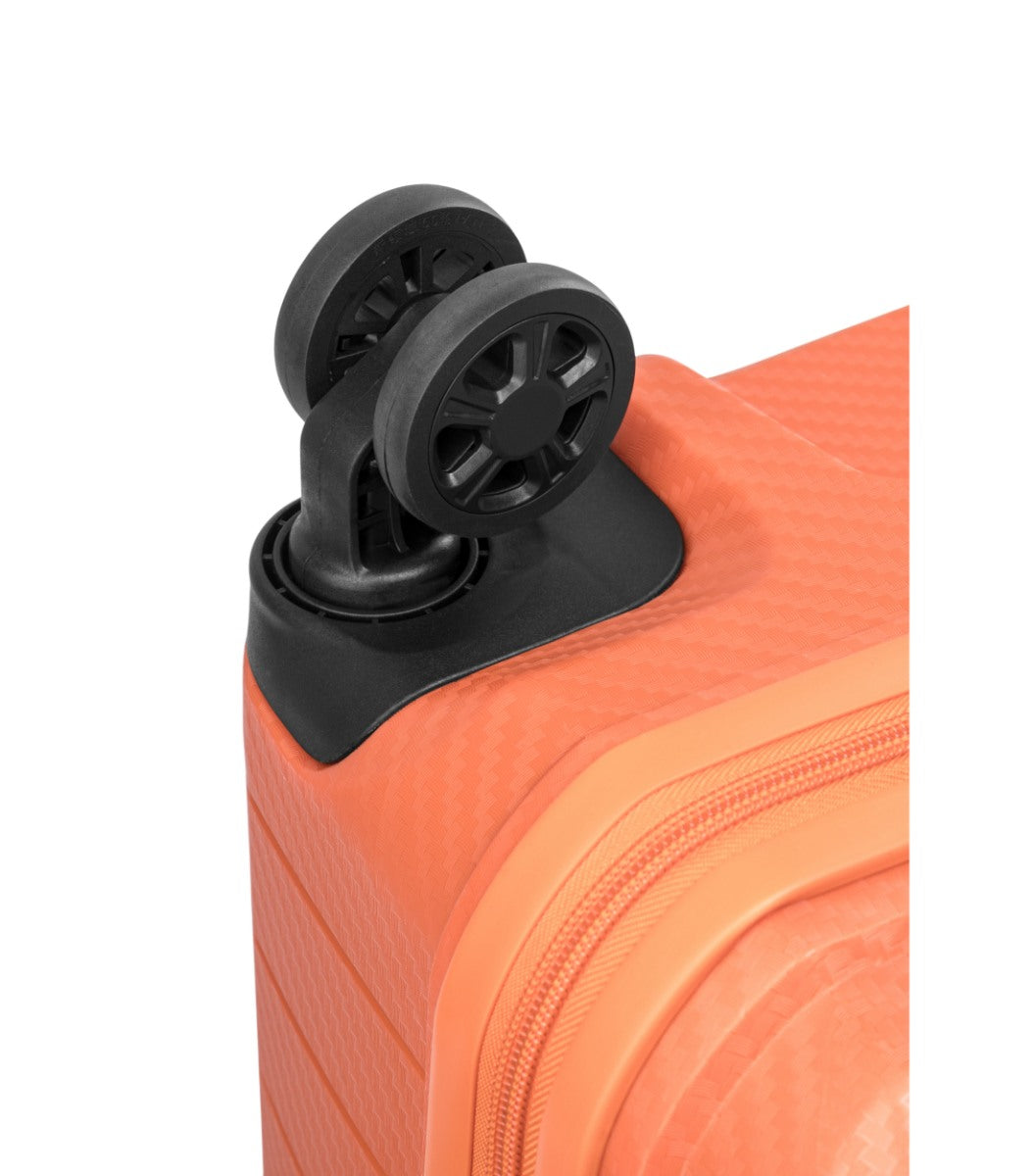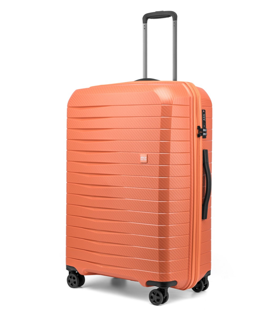 Denne kuffert er fremstillet i polypropylene. Materialet er ikke lige så stærkt som polycarbonat, men derimod rigtig let. Denne type kuffert er perfekt, hvis du vil rejse så let som muligt men samtidig have en holdbar kuffert.