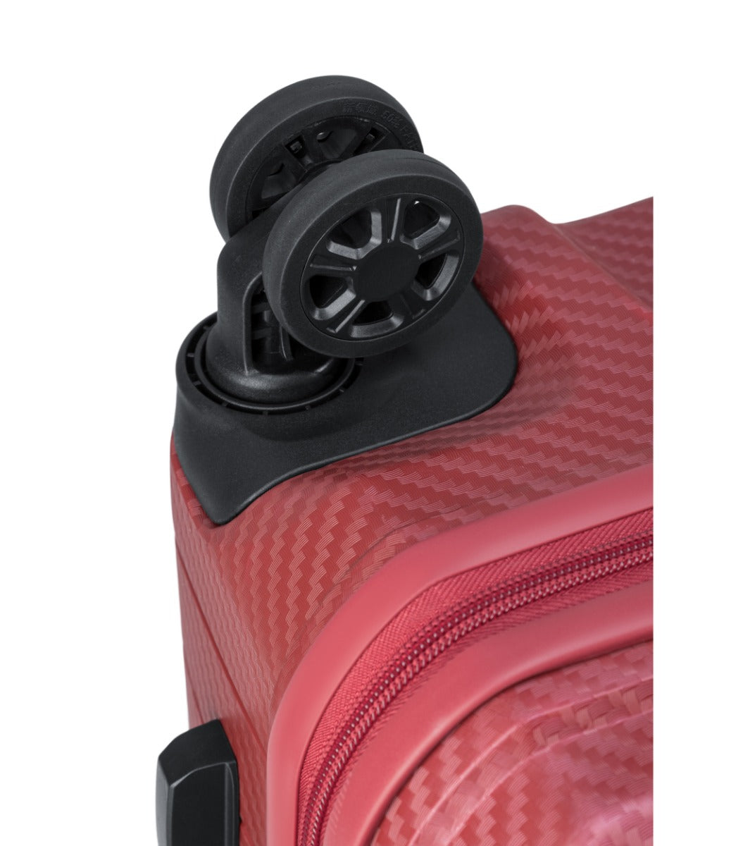 Denne kuffert er udstyret med 4 hjul. Dette giver en fordel, hvis du hovedsageligt skal transportere kufferten henover et jævnt terræn. Derudover giver det dig mulighed for at skubbe kufferten i stedet for at trække den.