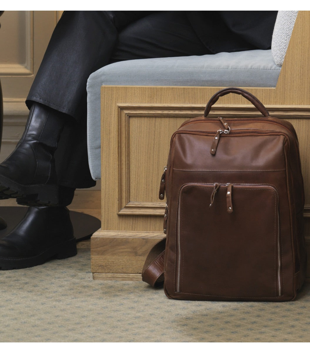 Her får du Cab Florens rygsæk fra Carlo. Rygsækken er fremstillet i flot kalveskind, som er udstyret med 3 separate rum hvor største rum passer til en 15” computer, samt små ekstra indvendige rum til opbevaring. Vatterede rygstykke samt bærestropper for maksimal bærekomfort. Elegant og tidløst design.