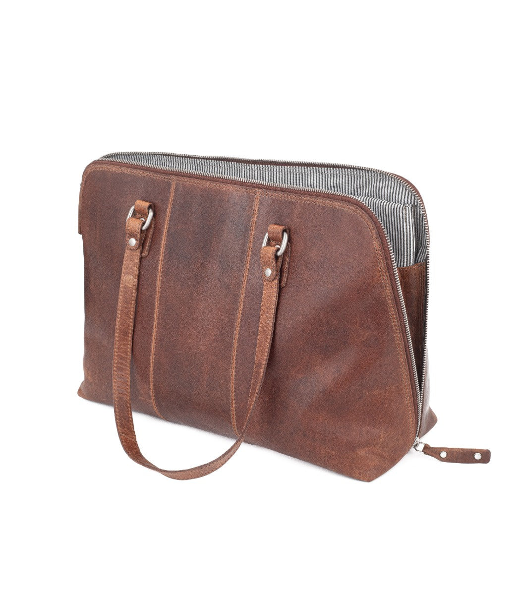 Tasken er fremstillet i flot kalveskind, som passer til en 15” computer. Elegant og tidløst design. Lynlås lukning ind til tasken indvendige rum hvor separat lomme til computer, samt to små ekstra lommer til opbevaring findes.