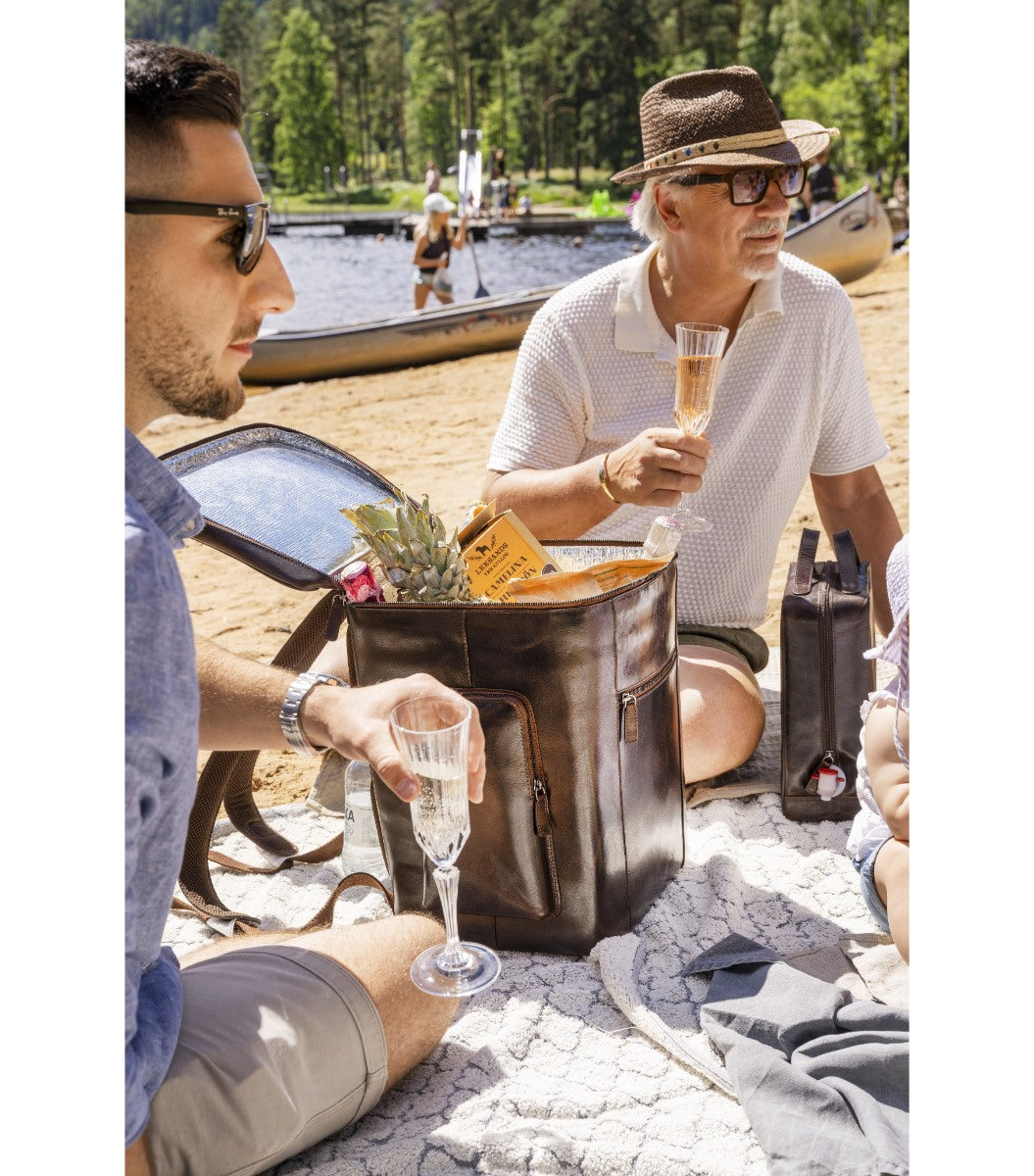 Her får du Tylösand køletaske rygsæk fra Carlo fremstillet i kalveskind. Den eksklusive designet rygsæk køletaske er udstyret med to polstrede skulderstropper og ekstra vatterede rygstykke for maksimal bærekomfort.