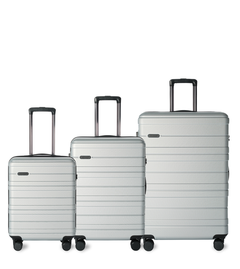 Du kan vælge mellem elegant sort og stilren sølv – begge med et design, der ser lige så godt ud i bagagekøen som på hotellet.