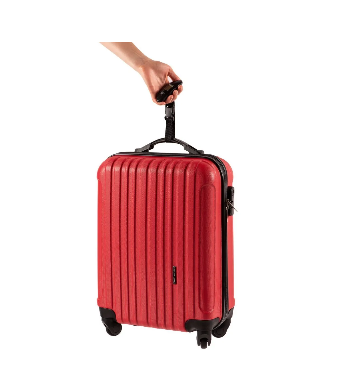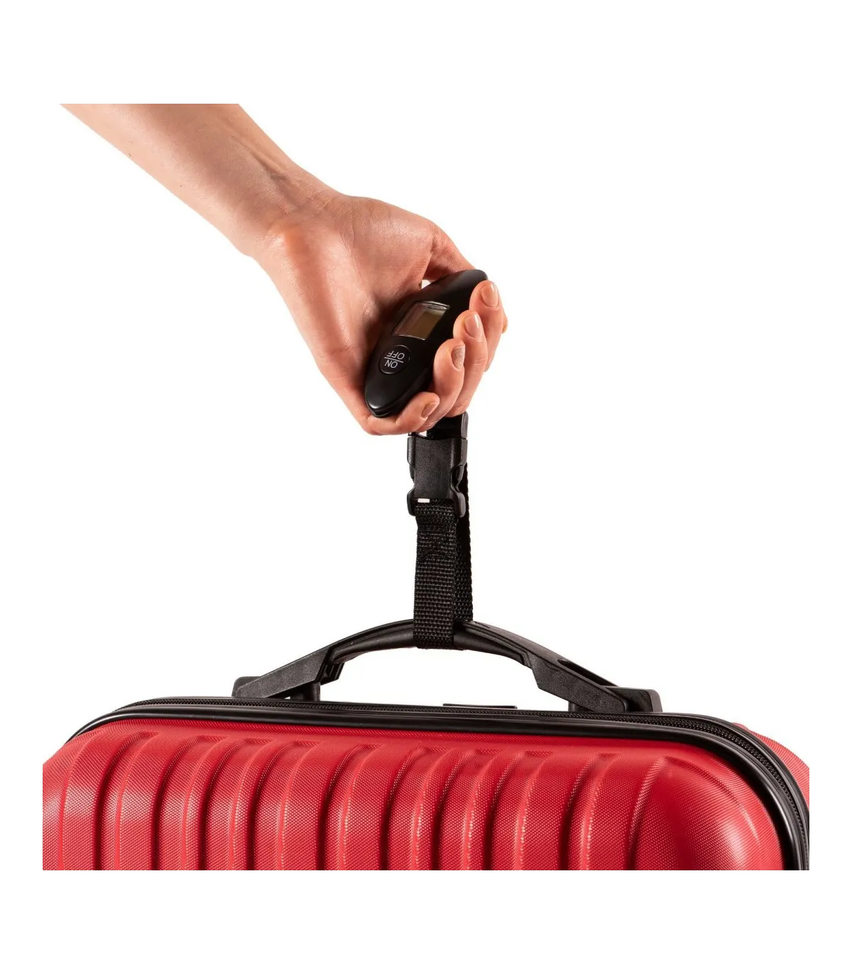 Bagagevægten er udstyret med en aftagelig sort rem, der gør det nemt at fastgøre den til din kuffert. Den har et læsbart og stort digitalt display, der sikrer præcise målinger med en nøjagtighed på op til 100 g.