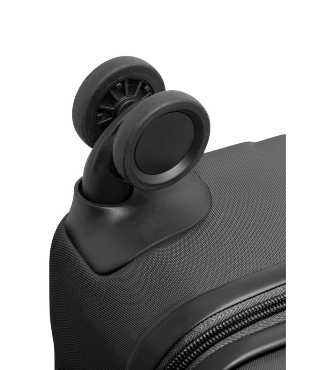 Denne kuffert har større og mere robuste "twin" DualTRAK hjul, som tilbyder en bedre manøvre på alle overflader. Dækket er lavet af et blødt, holdbart og lydløst materiale.