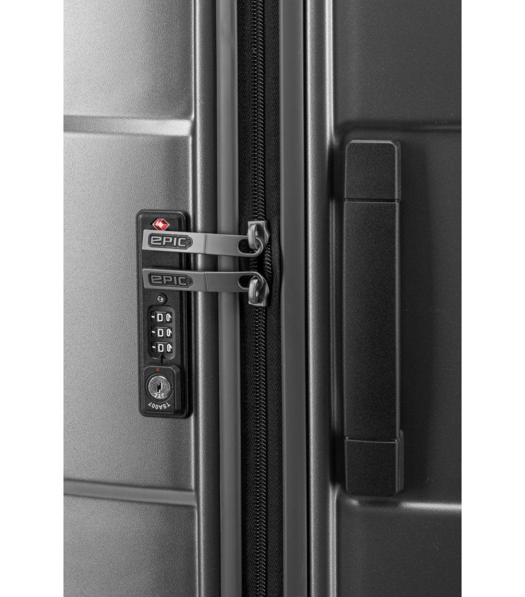 Kufferten er udstyret med en integreret TSA-kombinationslås, som holder dit indhold sikret mod tyveri, samtidig med at toldmyndigheder let kan inspicere bagagen uden at beskadige låsen.