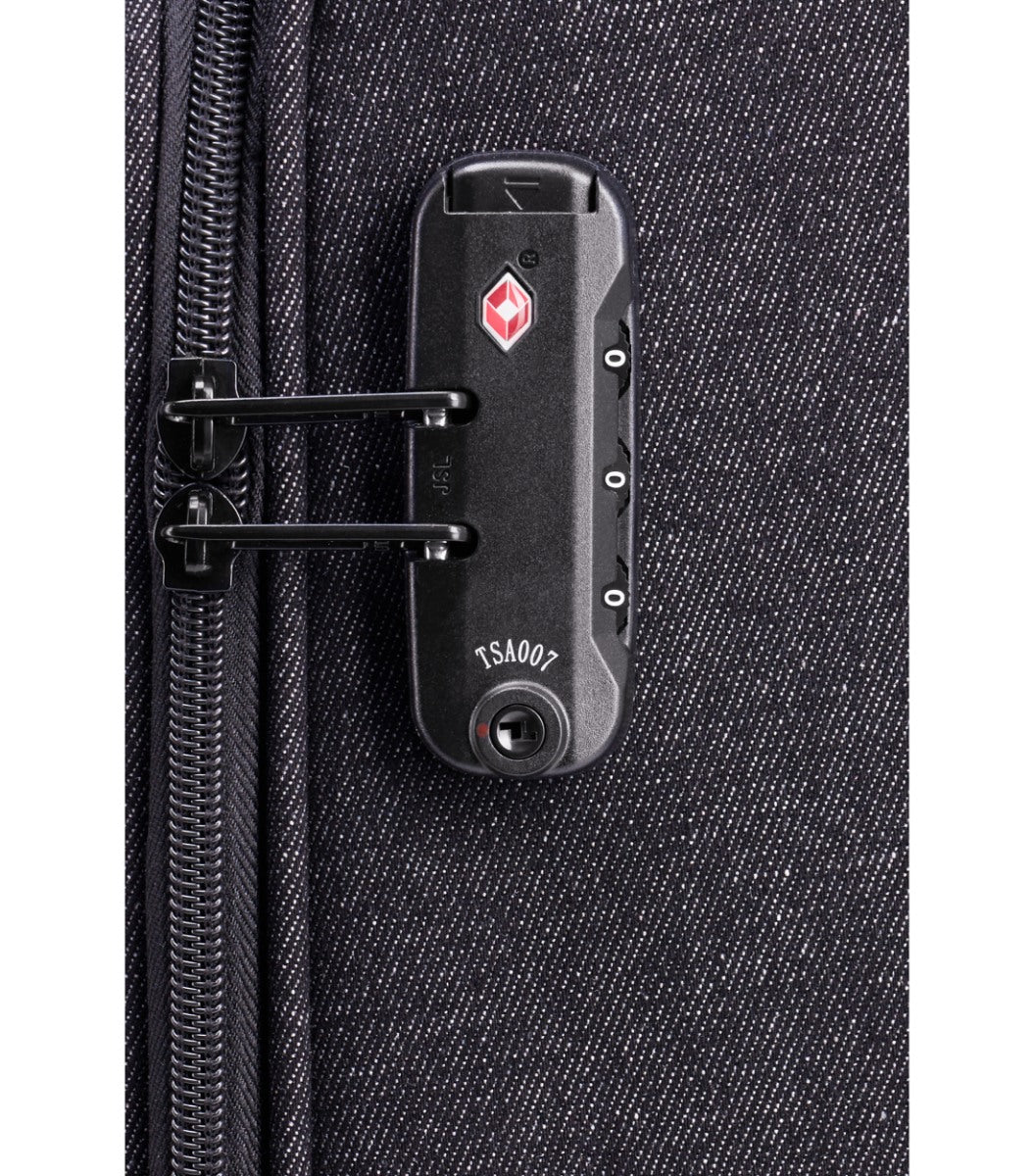 Kufferten besidder en TSA-lås, der lever op til de sikkerhedsmæssige standarder i branchen. En TSA-lås betyder, at den er godkendt af Transportation Security Administration i USA. Skulle det ske, at du skal gennem et manuelt tjek i USA’s lufthavne, vil de have mulighed for at åbne låsen med en universal nøgle i stedet for at flå lynlåsen op.