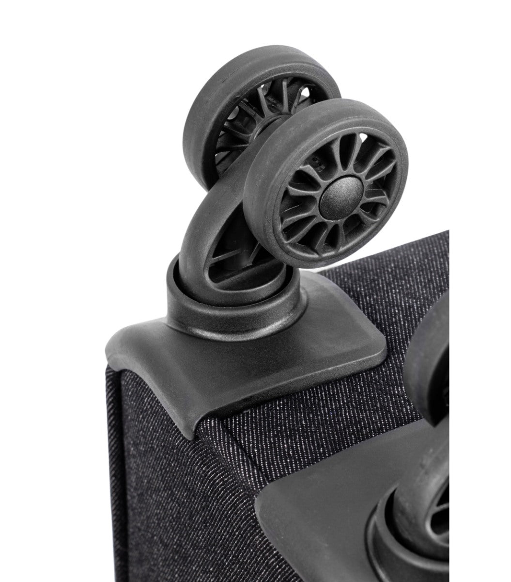 Denne kuffert har større og mere robuste "twin" DualTRAK hjul, som tilbyder en bedre manøvre på alle overflader. Dækket er lavet af et blødt, holdbart og lydløst materiale.