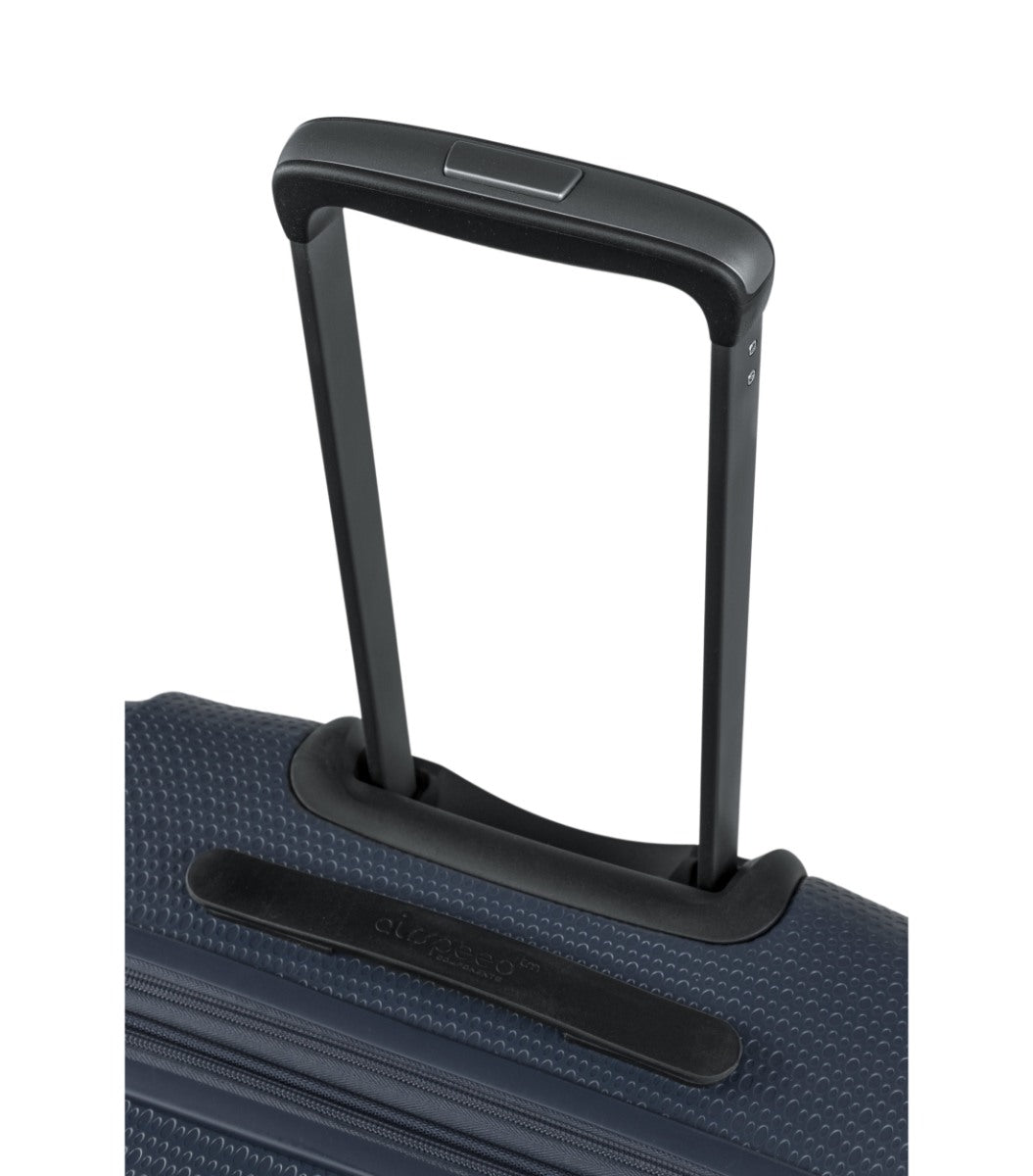 Der er indbygget et lækkert og behageligt teleskophåndtag, som kan justeres i højden, så den passer perfekt til dig. Samtidig er der bærehåndtag, som gør det let at bære kufferten, når der er behov for det.