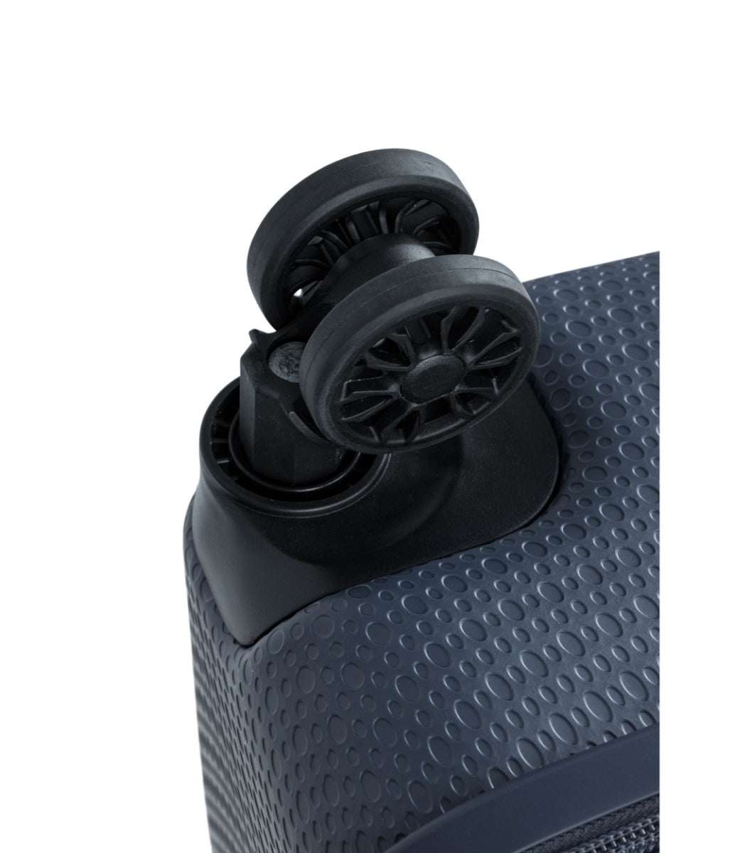 Hjulene på kufferten er 360 graders hjul, som giver et behageligt og flydende manøvre på jævn overflade. Men kan også stå gangen, skulle terrænnet blive lidt mere kuperet.
