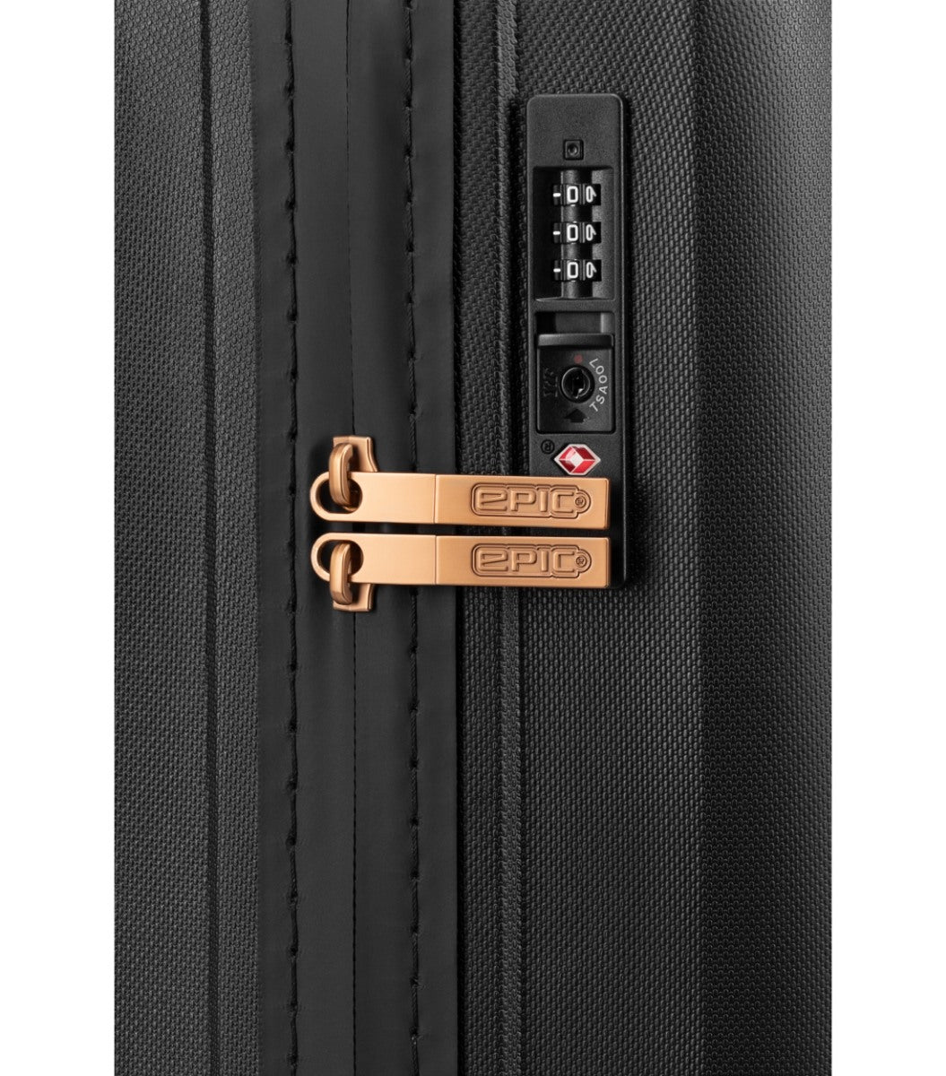 Denne kuffert er Ultra Slim hvilket betyder, at den overholder de maksimale mål for håndbagage. Det vil sige en højde på 55 cm, bredde på 40 cm og en dybde på 20 cm. De fleste hardcase kufferter fra EPIC produceres som Ultra Slim.