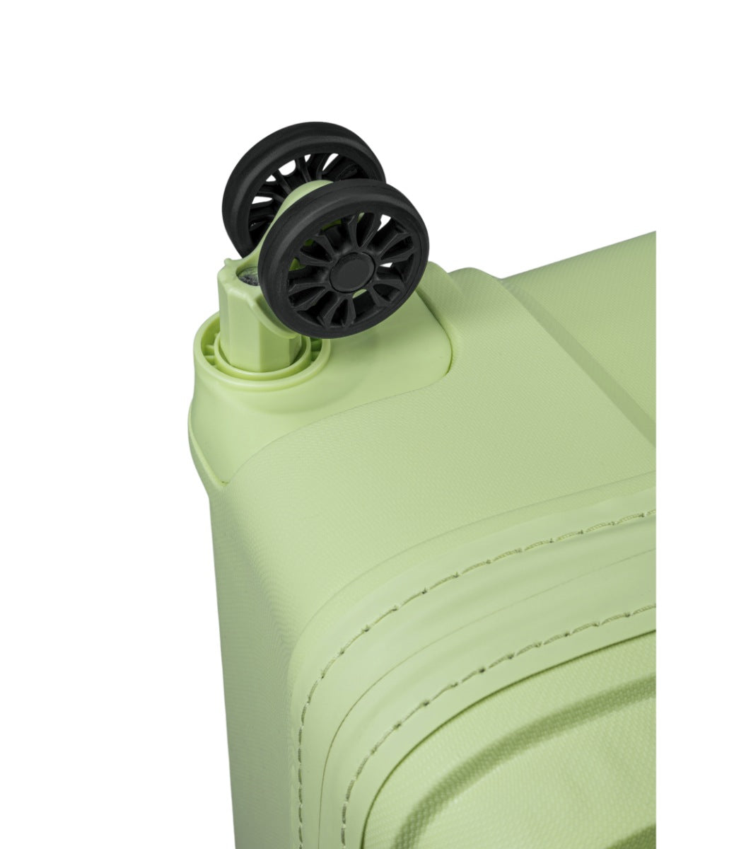 Denne kuffert har større og mere robuste "twin" DualTRAK hjul, som tilbyder en bedre manøvre på alle overflader. Dækket er lavet af et blødt, holdbart og lydløst materiale.