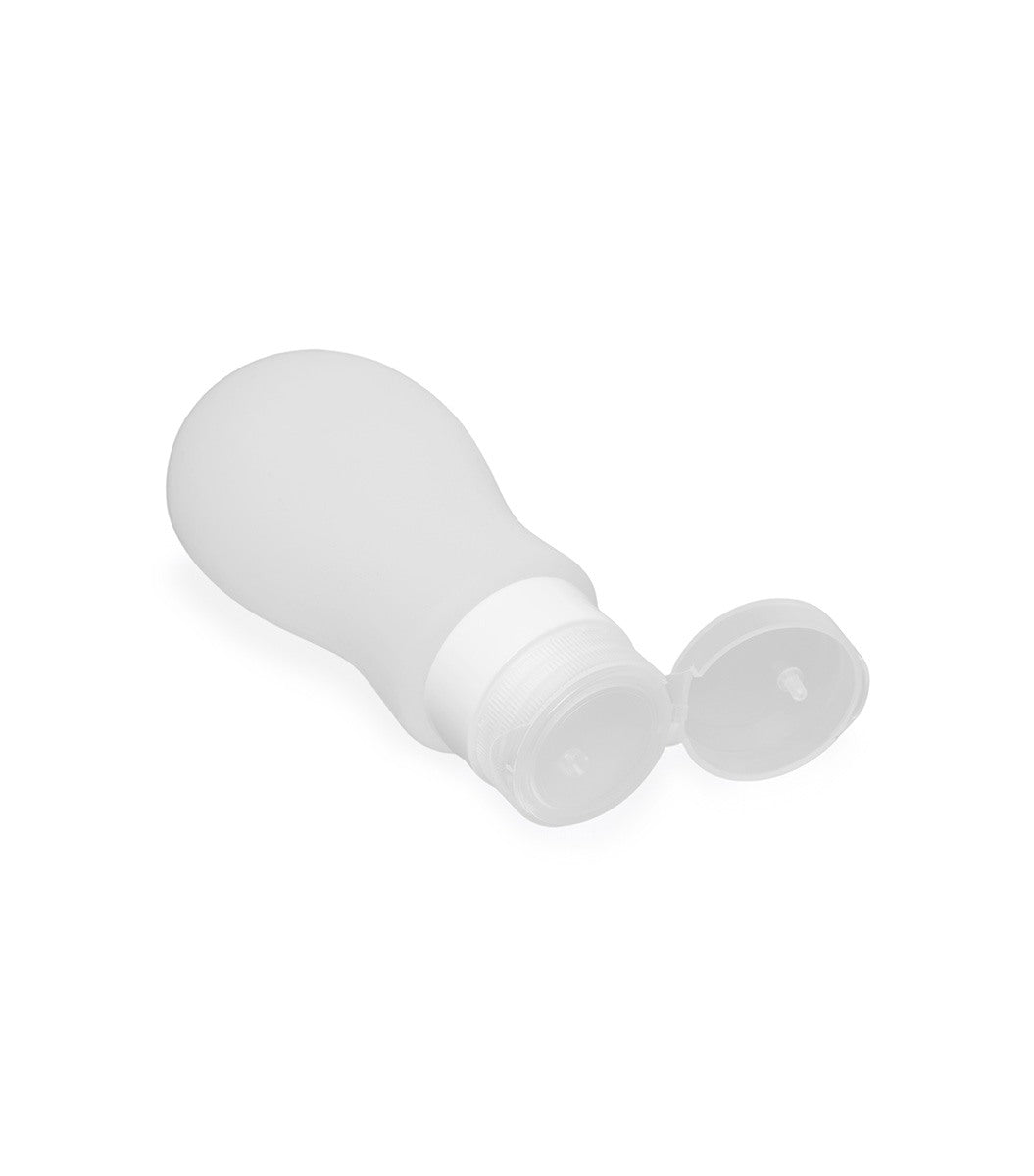 Introduktion til vores produkt: En praktisk og holdbar silikoneflaske med en speciel ventil, der holder låget rent. Flaskerne er nemme at rengøre og fylde op, takket være den store, aftagelige åbning. Og med den integrerede sugekop kan du nemt fastgøre flasken på enhver væg i brusebadet. Flaskerne har en kapacitet på 90 ml og er lavet af 100% BPA-fri silikone.