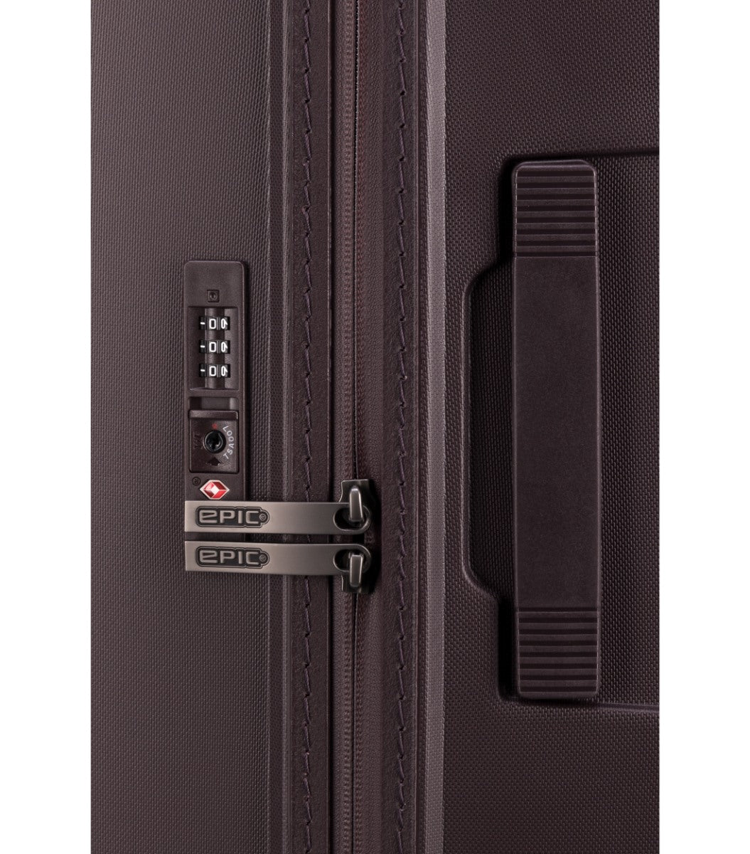 Denne kuffert har Epic Standard hjulsystem. Det betyder, at hjulene altid kan skiftes nemt og enkelt. Derudover har de en bedre manøvre på alle overflader. Dækket er lavet af et blødt, holdbart og lydløst materiale.