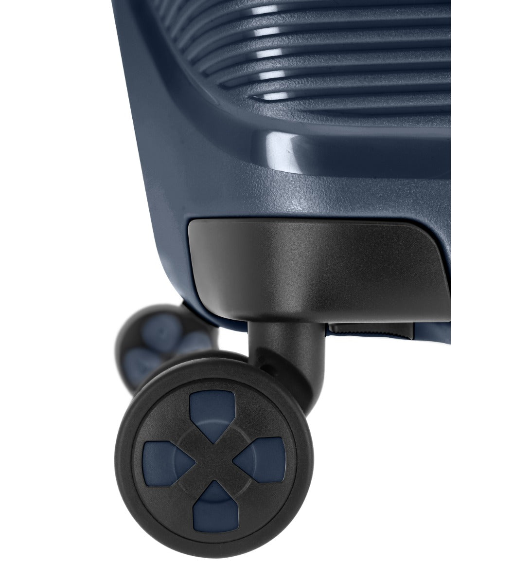 Som noget helt nyt kommer IP1 med aftagelige hjul. Man kan tage hvert hjul af med et lille klik under kufferten, så man nemt kan udskifte defekte og slidte hjul.
