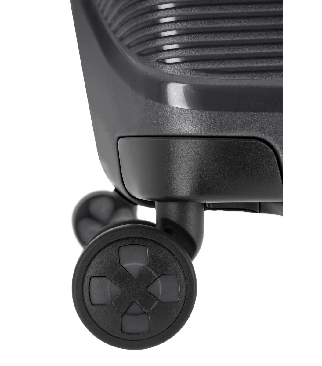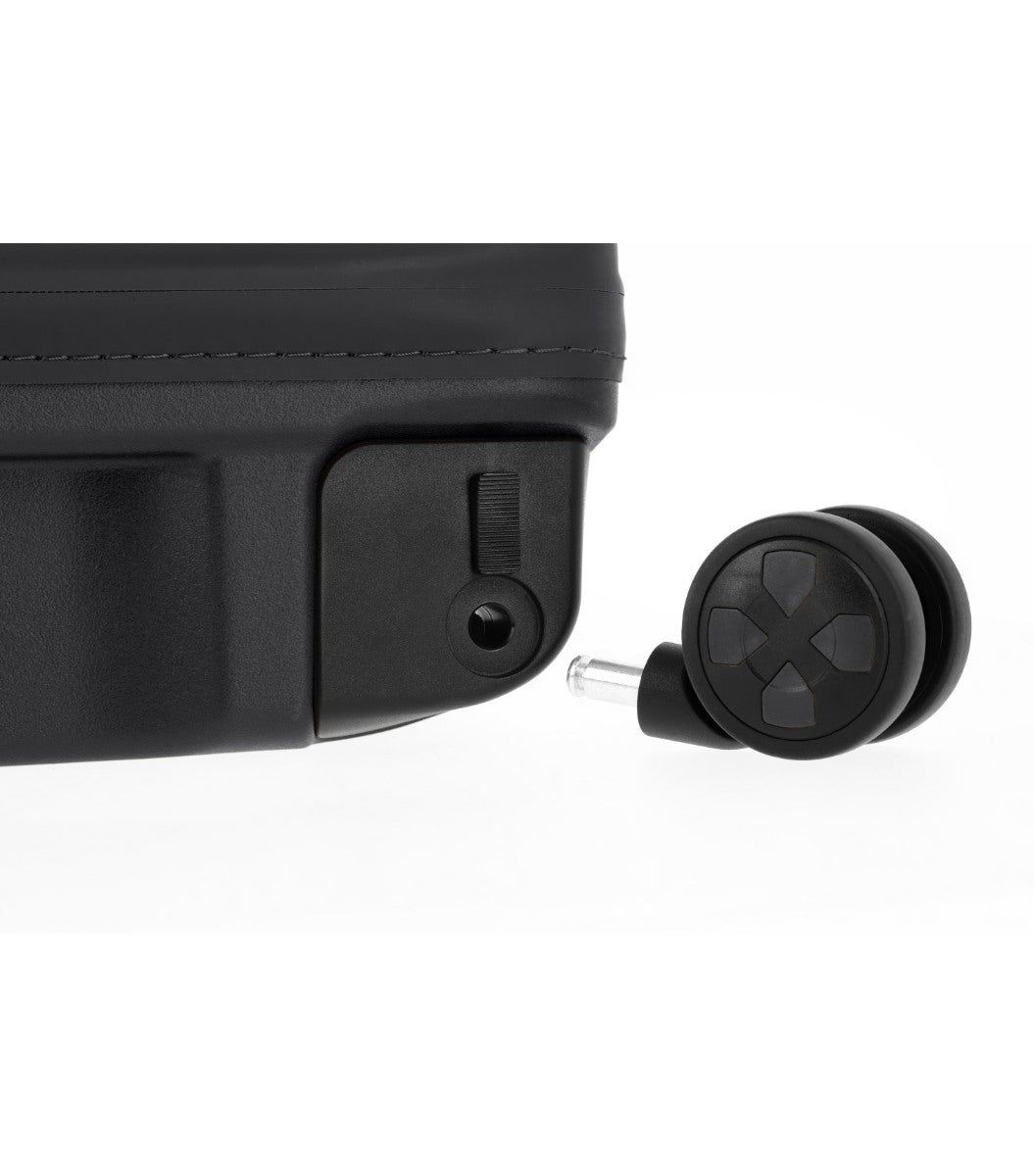 Som noget helt nyt kommer IP1 med aftagelige hjul. Man kan tage hvert hjul af med et lille klik under kufferten, så man nemt kan udskifte defekte og slidte hjul.