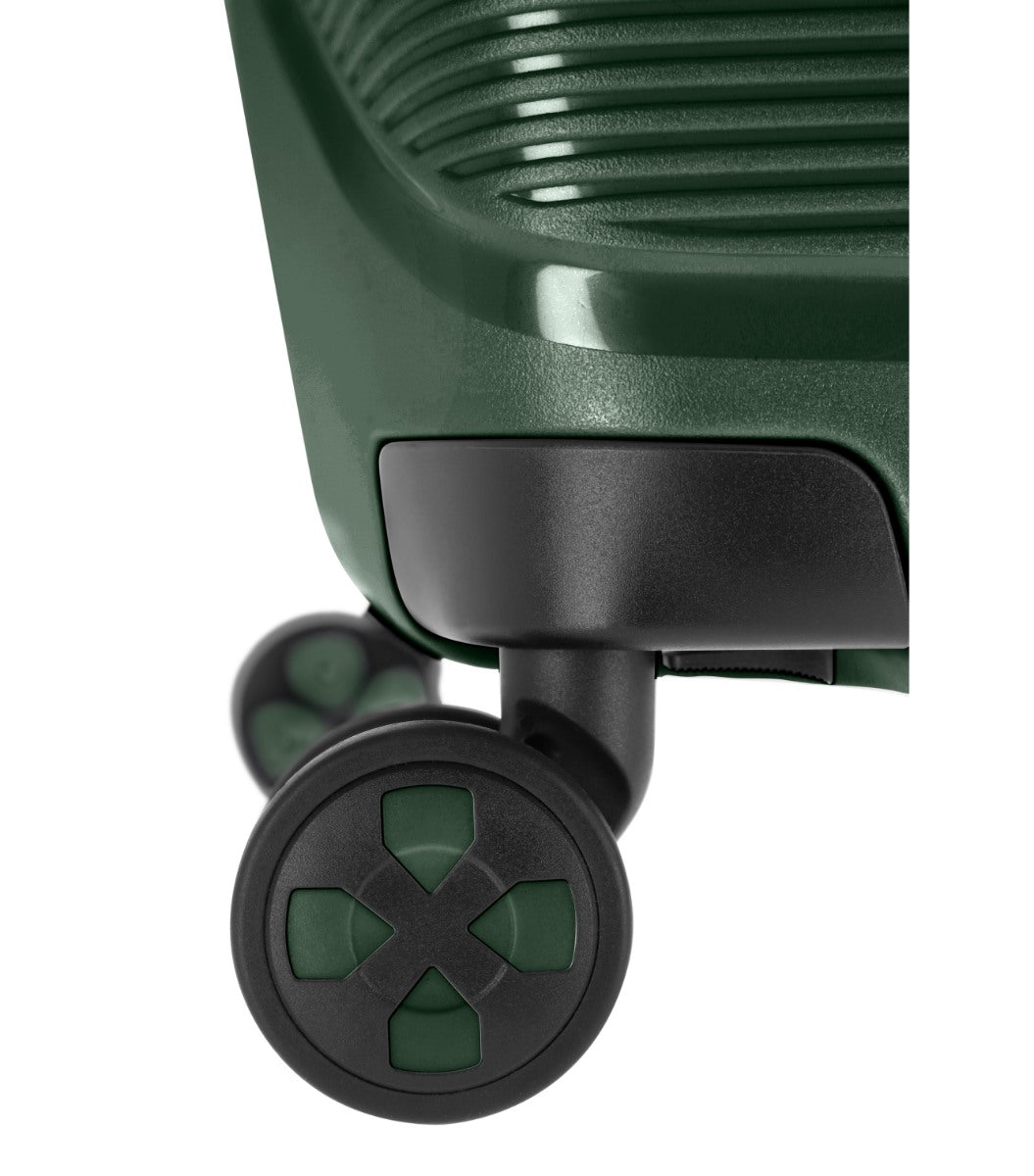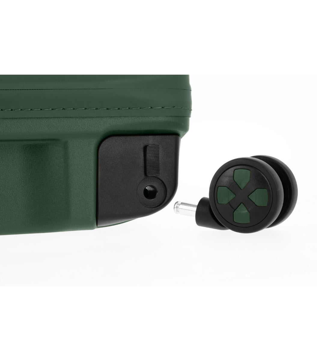 Som noget helt nyt kommer IP1 med aftagelige hjul. Man kan tage hvert hjul af med et lille klik under kufferten, så man nemt kan udskifte defekte og slidte hjul.