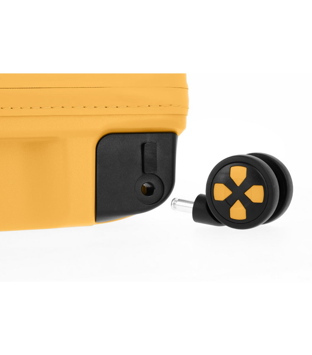 Som noget helt nyt kommer IP1 med aftagelige hjul. Man kan tage hvert hjul af med et lille klik under kufferten, så man nemt kan udskifte defekte og slidte hjul.