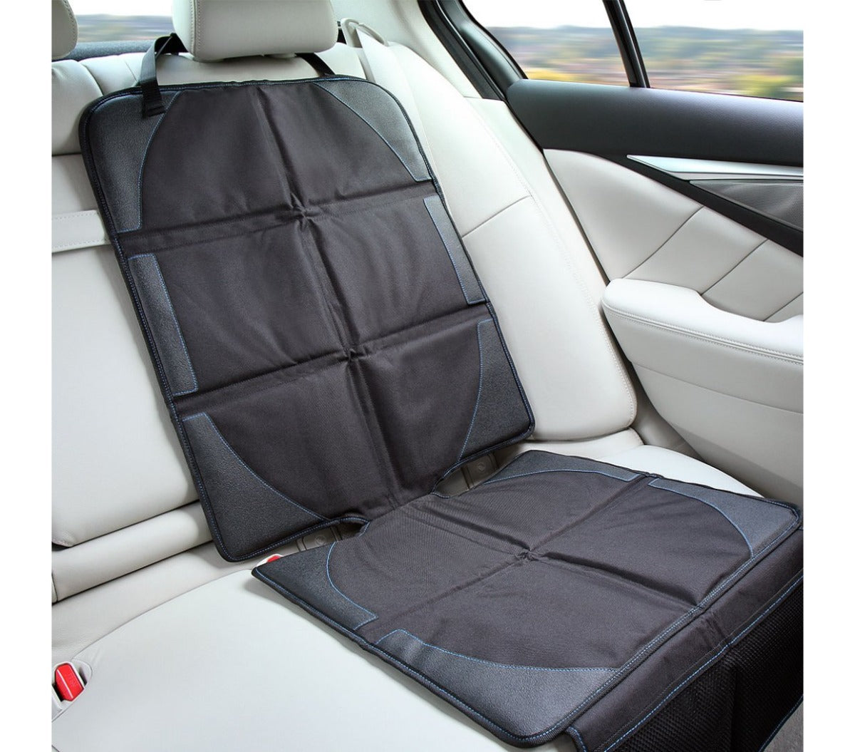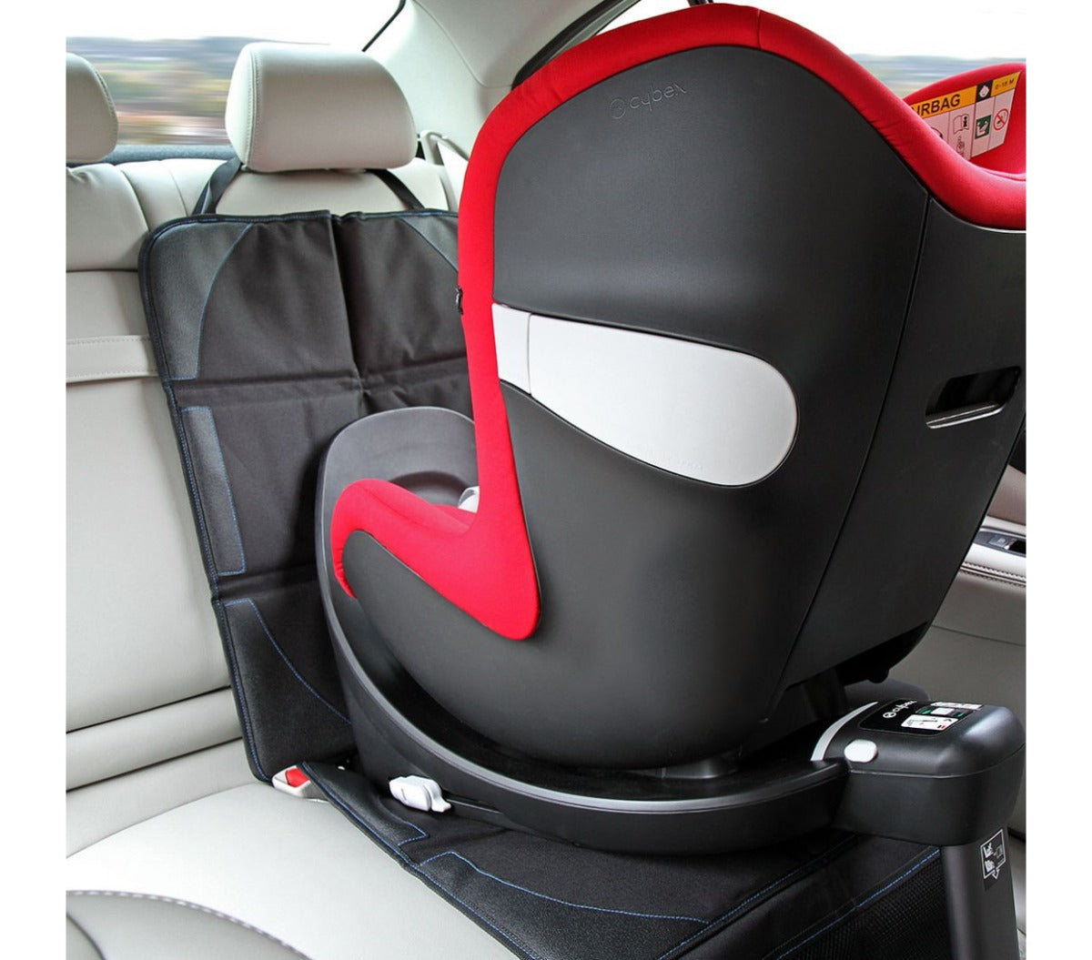 Bilsædebeskytteren er kompatibel med alle autostole samt for- og bagudvendte autostole. Den har en skridsikker overflade med nem adgang til sikkerhedssele og ISOFIX-punkter.