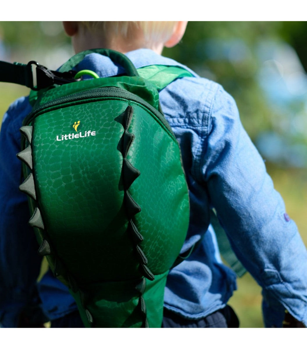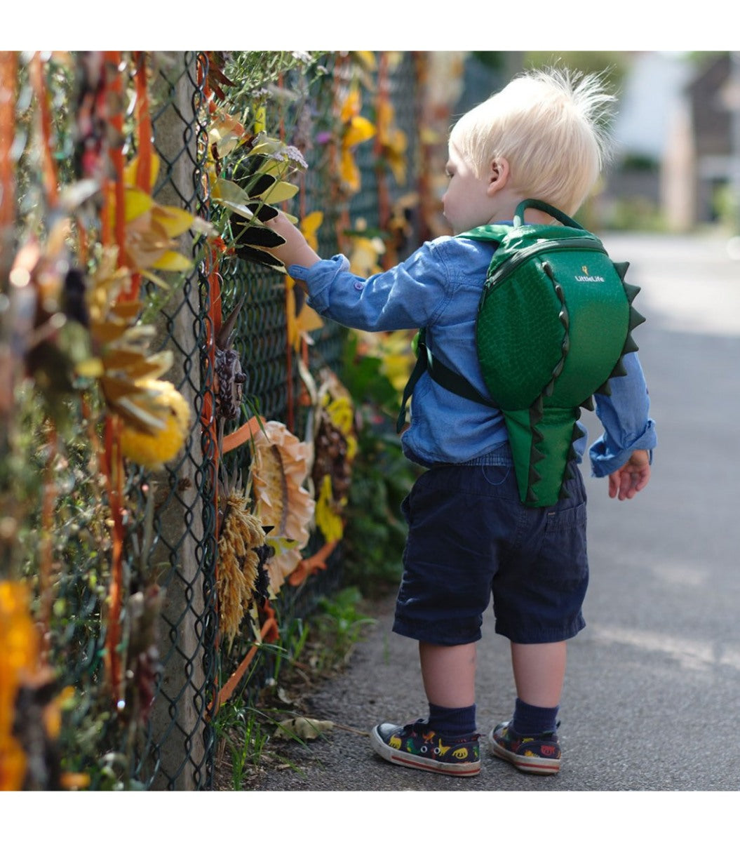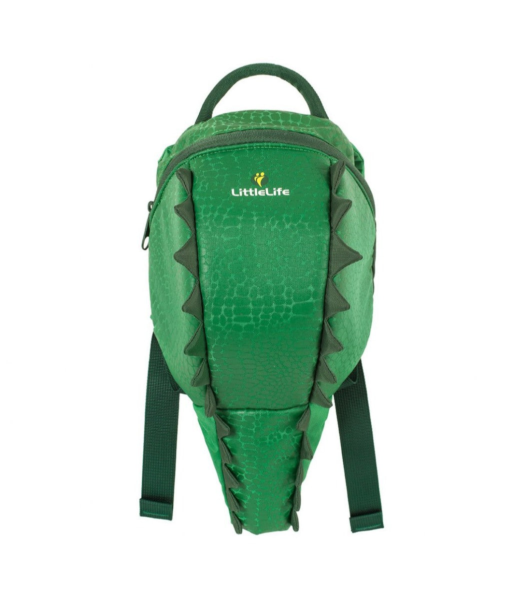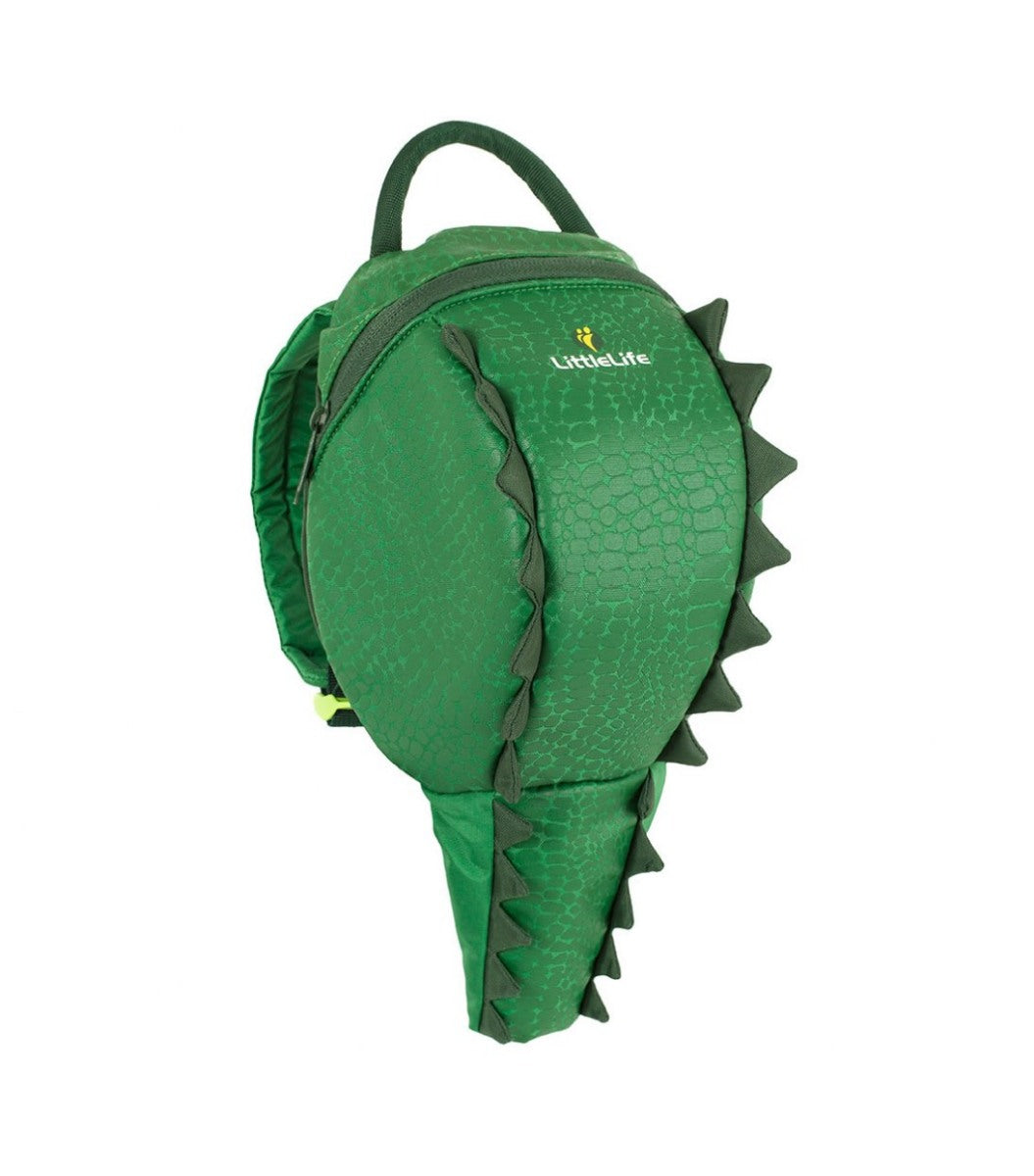 Denne søde lille krokodille-rygsæk er perfekt til små eventyrere, der har brug for at have deres yndlingslegetøj, snacks og andre nødvendigheder med på tur. Rygsækken har masser af plads indeni og justerbare stropper, så den sidder godt og behageligt på ryggen. Derudover kan du tage sikkerhedsstroppen af, når børnene er klar til at løbe frit omkring. Rygsækken har en lynlåsåbning øverst, en indvendig navne- og adresseetiket, justerbare skulderstropper med brystspænde, en hovedrum på 2 liter og en bærehank på toppen.