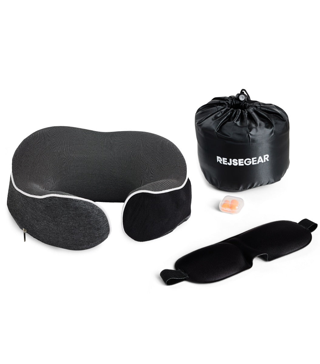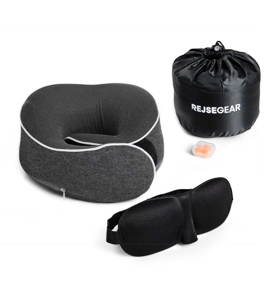 - Inkluderet: Nakkepude, sovemaske, ørepropper, opbevaringspose