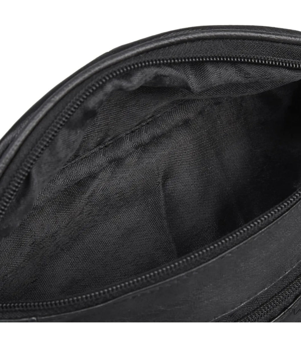 Her får du en smart og praktisk læder bæltetaske i skind. Bæltetasken har plads til alle de nødvendige ting på rejsen eller i hverdagen, da den indeholder flere lynlås lommer.