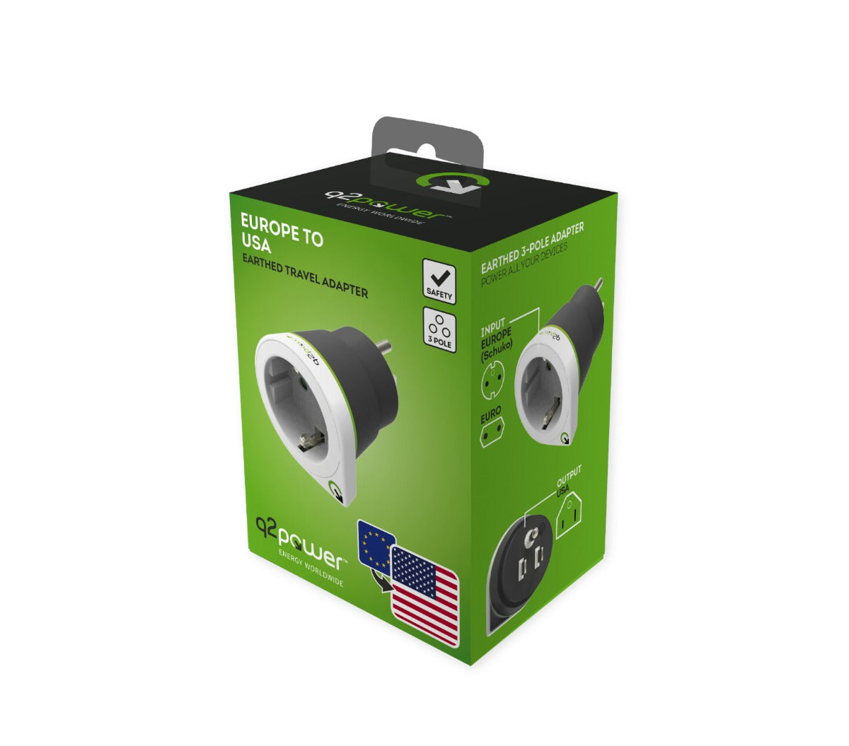 Her får du en smart rejseadapter som passer til USA fra EU. Rejseadapteren kan bruges i hele USA og 50 andre lande, så du behøver ikke bekymre dig om dine stik passer, når du rejser over Atlanten.