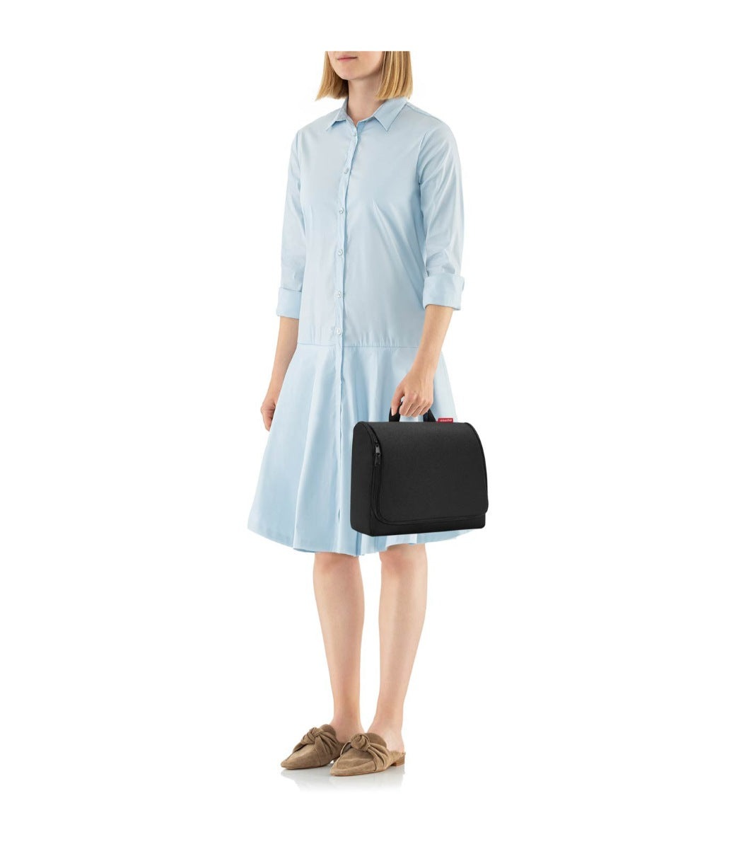 Her får du en smart og stor toilettaske fra Reisenthel. Toilettasken gør, så du kan føle dig hjemme, uanset hvor du befinder dig i verden. Du skal blot folde den ud og hænge den op - toilettasken fra Reisenthel har masser af plads til rejseflasker og toiletgrej.