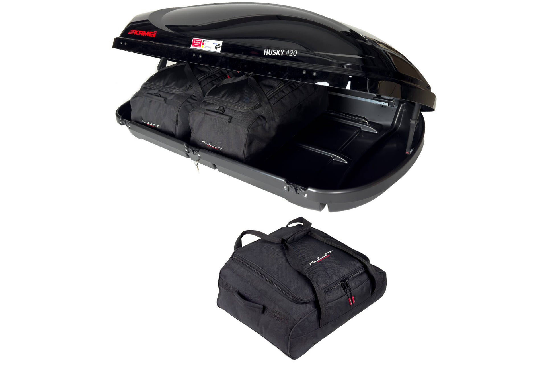 Her får du et sæt af rejsetasker, der passer perfekt til tagboksen. Du kan være sikker på, at bagagen bliver nem at pakke med denne løsning.