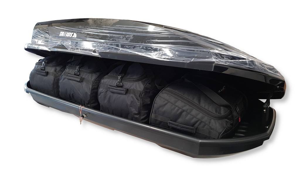 Her får du et sæt af rejsetasker, der passer perfekt til tagboksen. Du kan være sikker på, at bagagen bliver nem at pakke med denne løsning.