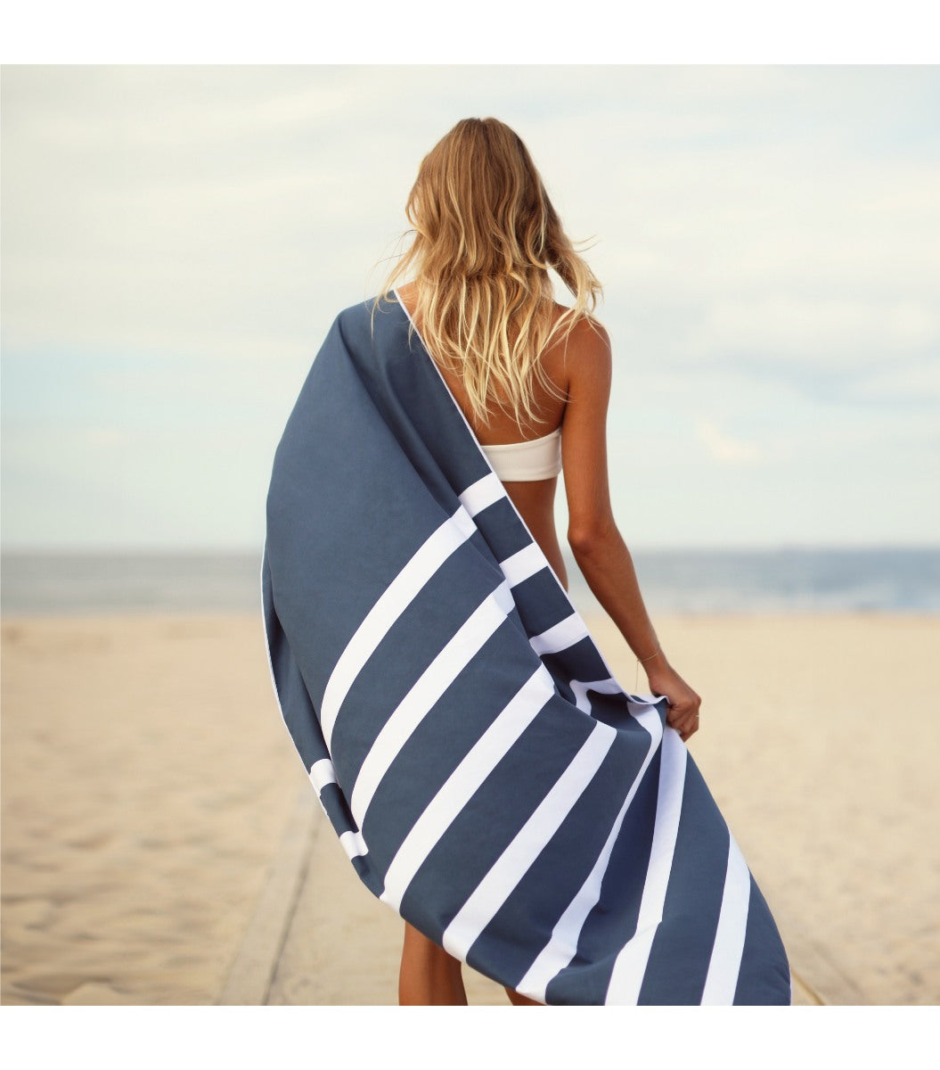 Strandhåndklædet er sandafvisende og hurtigtørrende - to elementer, der er helt essentielle til stranden, hvor du gerne vil undgå at smide et vådt håndklæde ind i bilen efterfølgende.