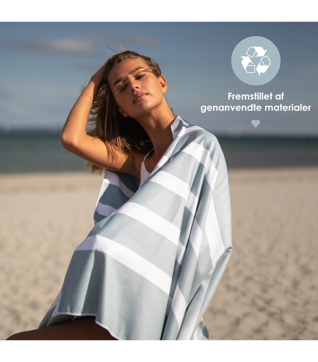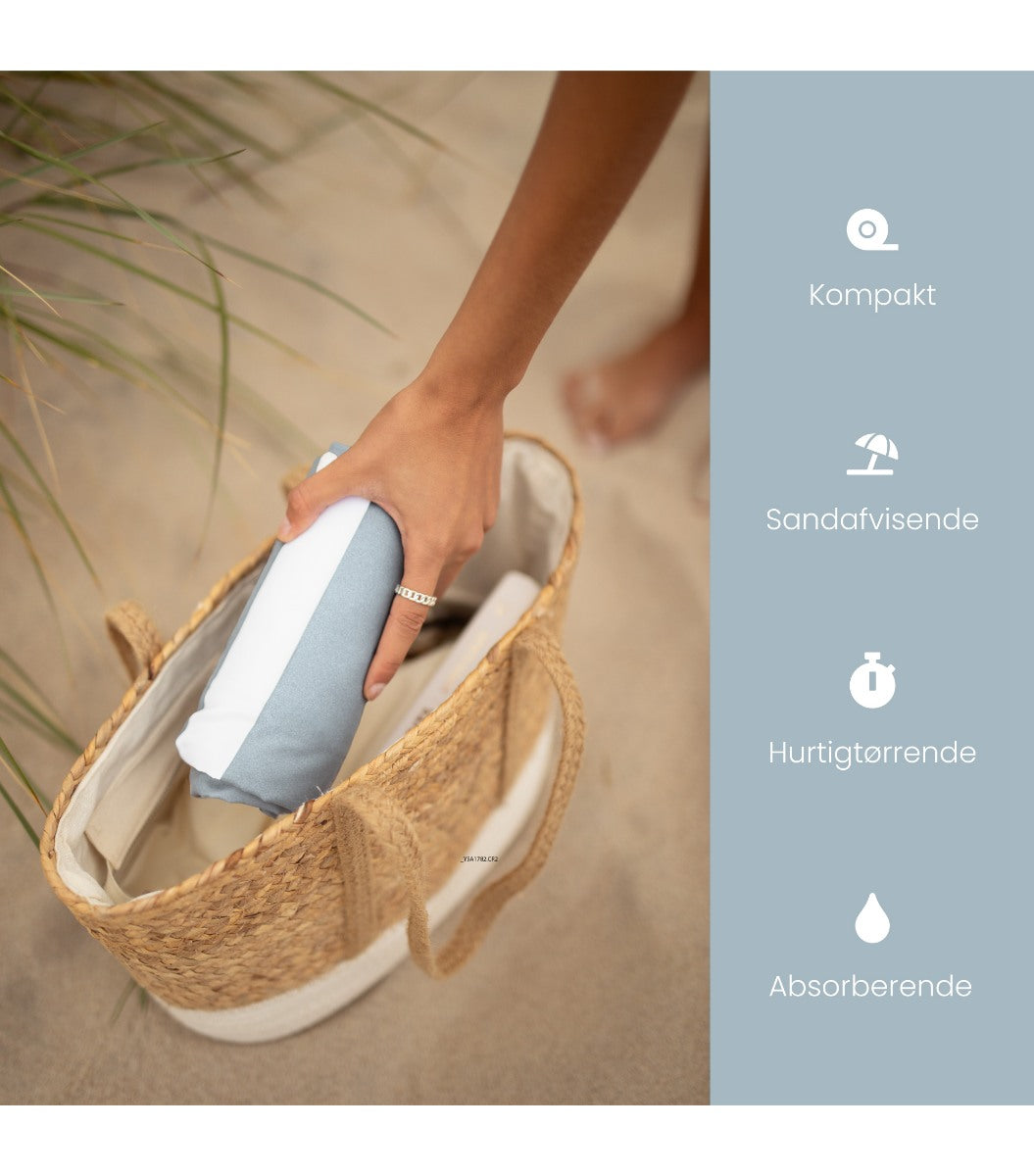 Strandhåndklædet er sandafvisende og hurtigtørrende - to elementer, der er helt essentielle til stranden, hvor du gerne vil undgå at smide et vådt håndklæde ind i bilen efterfølgende.