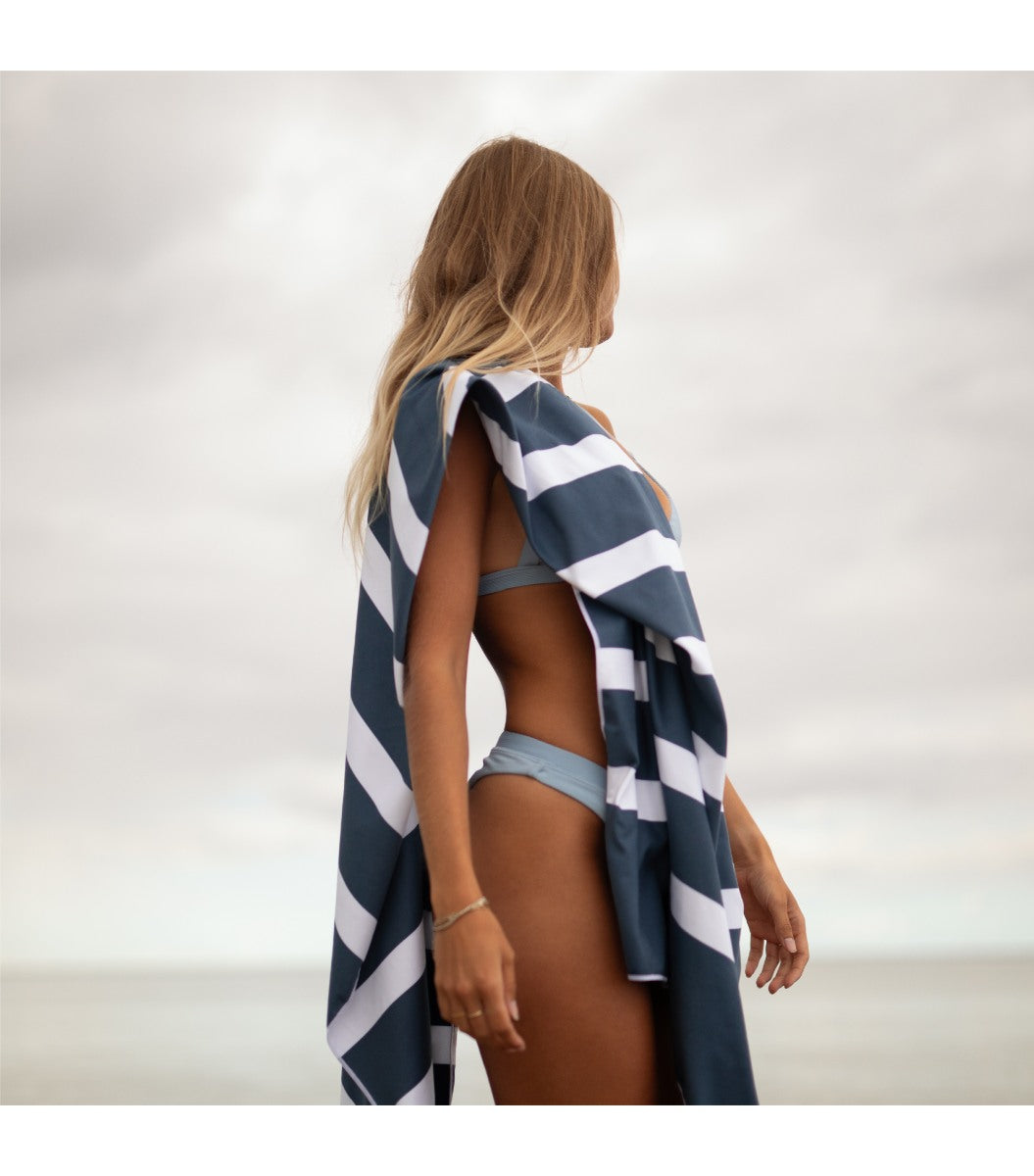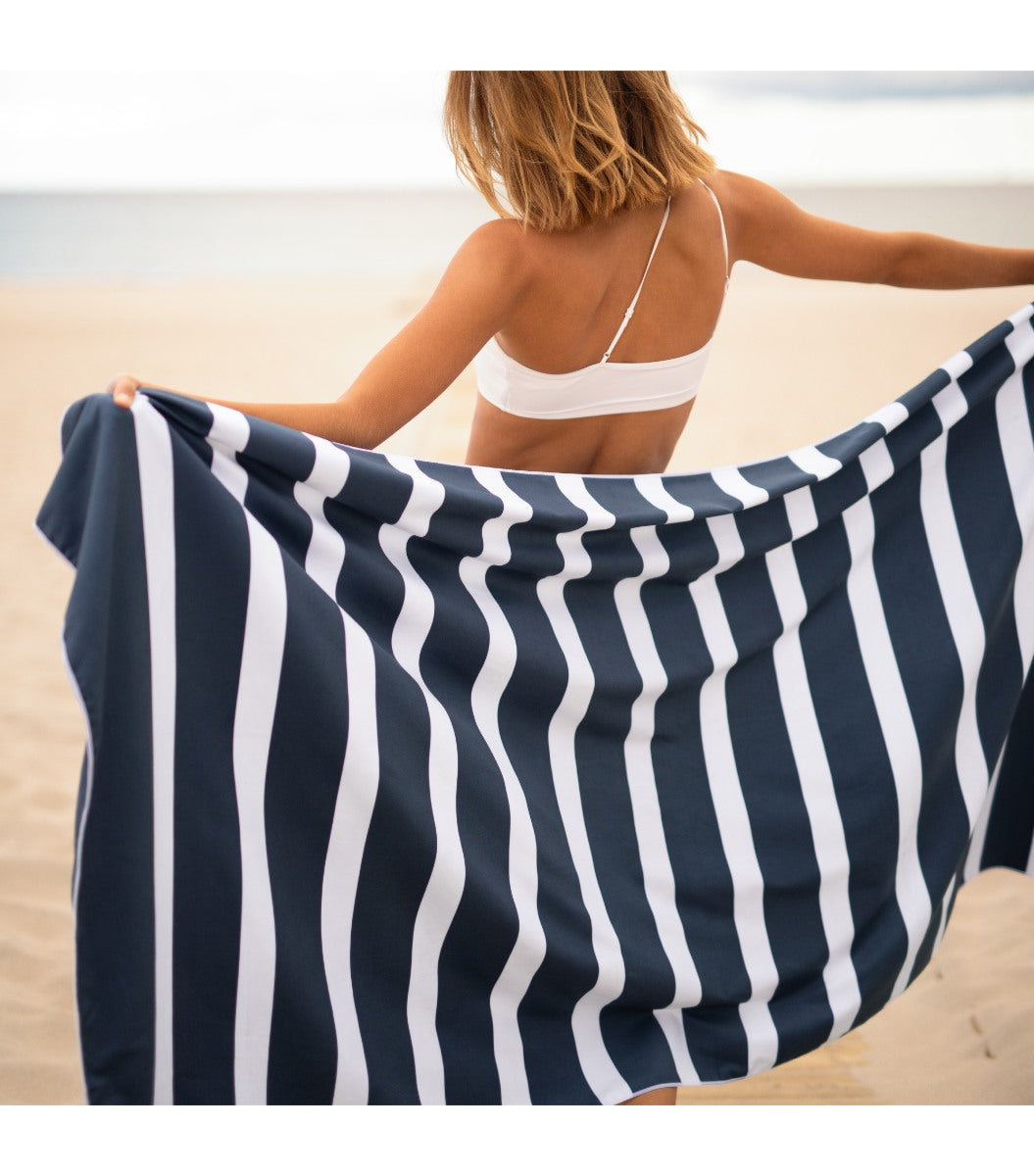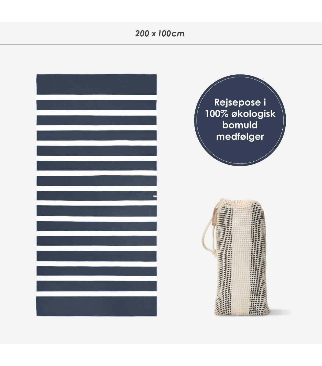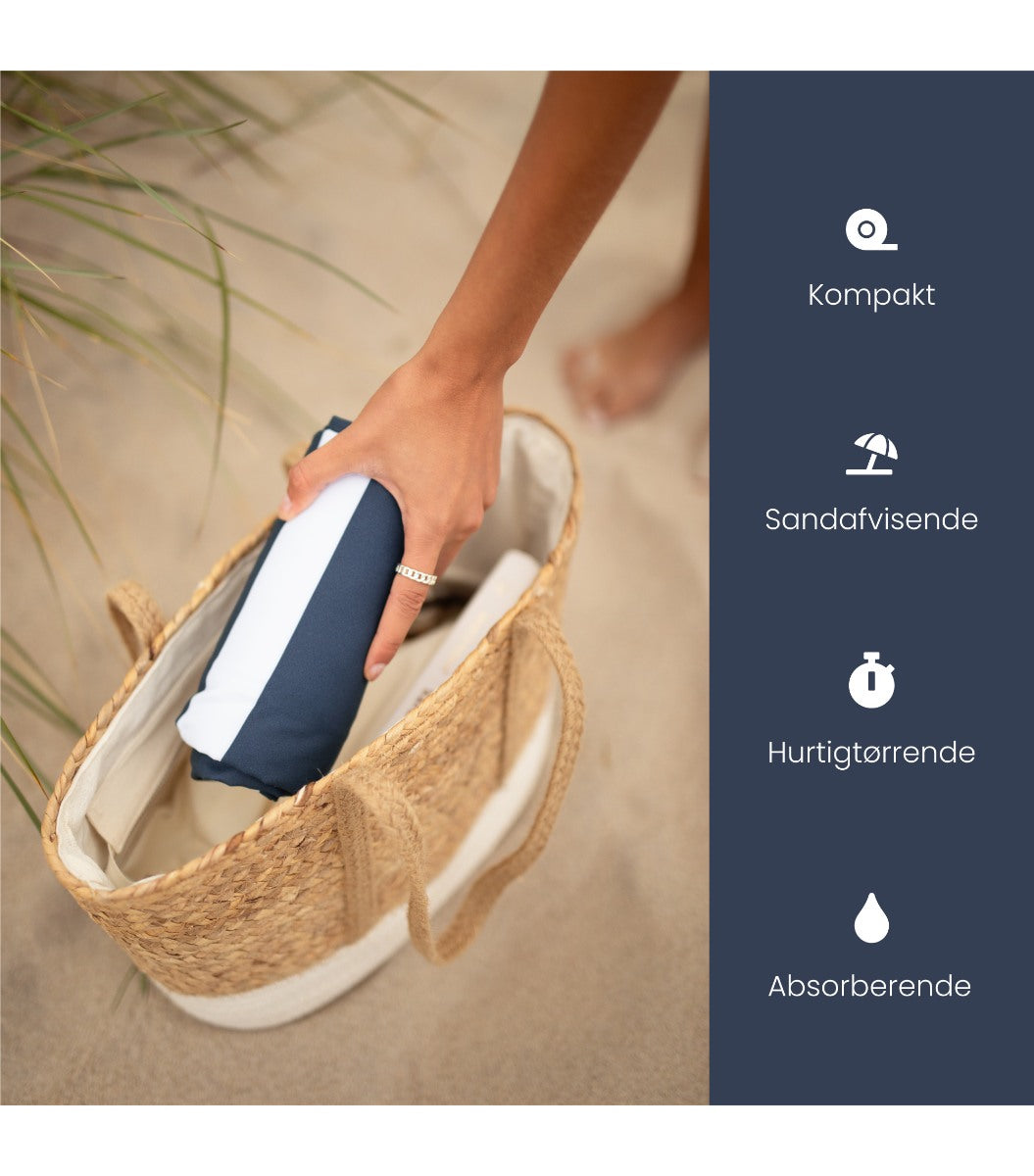 Strandhåndklædet er sandafvisende og hurtigtørrende - to elementer, der er helt essentielle til stranden, hvor du gerne vil undgå at smide et vådt håndklæde ind i bilen efterfølgende.