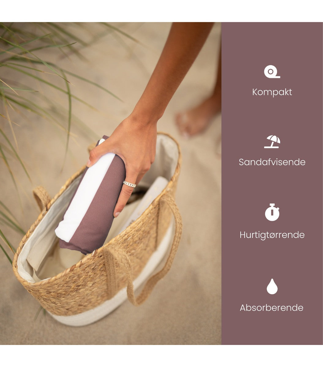 Strandhåndklædet er sandafvisende og hurtigtørrende - to elementer, der er helt essentielle til stranden, hvor du gerne vil undgå at smide et vådt håndklæde ind i bilen efterfølgende.