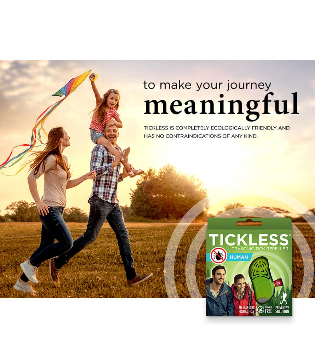 Tickless Human er den ideelle løsning til at holde flåter væk under udendørs aktiviteter som vandreture, havearbejde, jagt, gåture eller camping. Du skal blot fastgøre enheden til dit tøj, og den holder flåter væk i mindst 6 måneder, så hele din familie kan nyde naturen uden bekymringer.