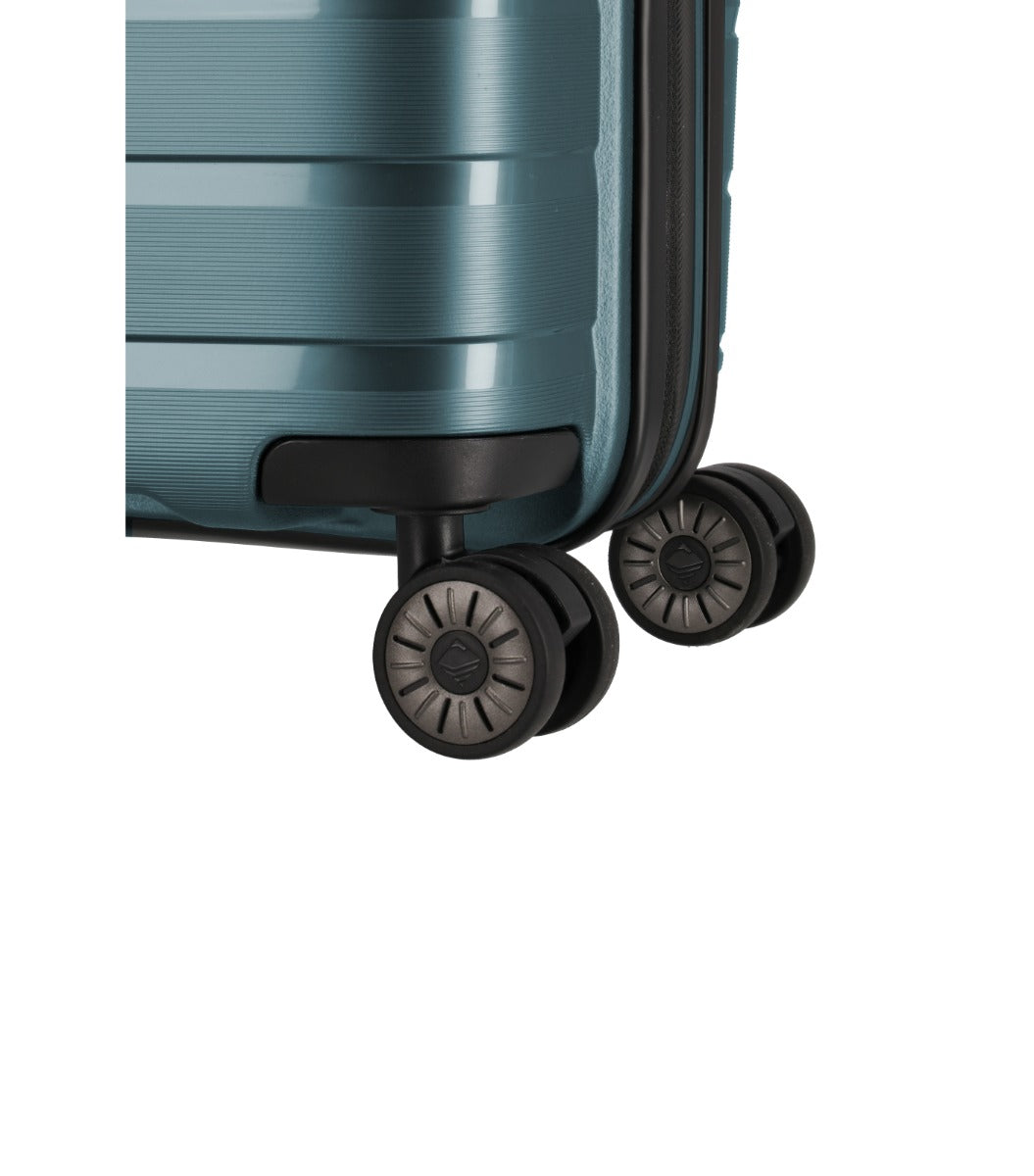 Under kufferten sidder fire 360 graders dobbelthjul, som er med til at give en lækker og behagelig manøvre over jævne overflader. Der er ingen der kan lide en kuffert, som larmer, når den triller.