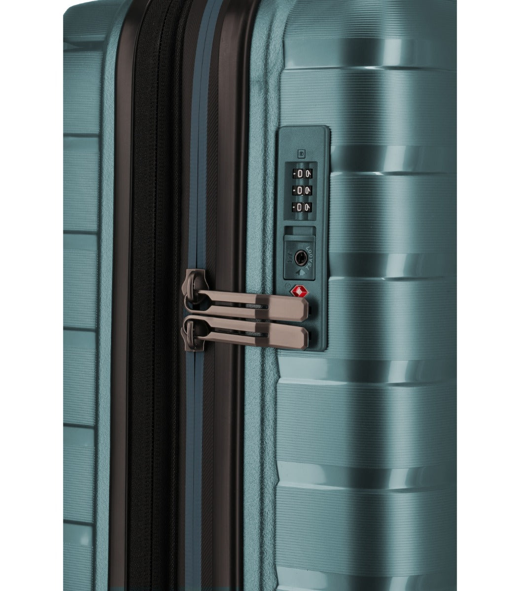 Skallen på Air Base er fremstillet i meget holdbart polypropylen. På toppen sidder et indbygget teleskophåndtag, som let kan justeres i højden. Ligeledes sidder der på siden en integreret TSA-lås, som er med til at sikre indholdet i din kuffert. På denne måde kan du have ro i sindet, når kufferten forlader dine hænder.