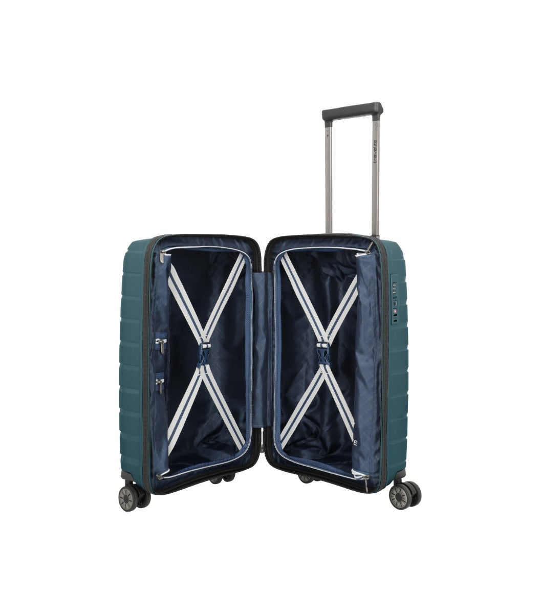Air Base fra Travelite er en stilren trolley med et unikt og moderne design. Fokus har været at skabe en forbindelse mellem de rå linjer og det populære skinnende design. En opgave, som man må sige, at Travelite har været succesfuld med.