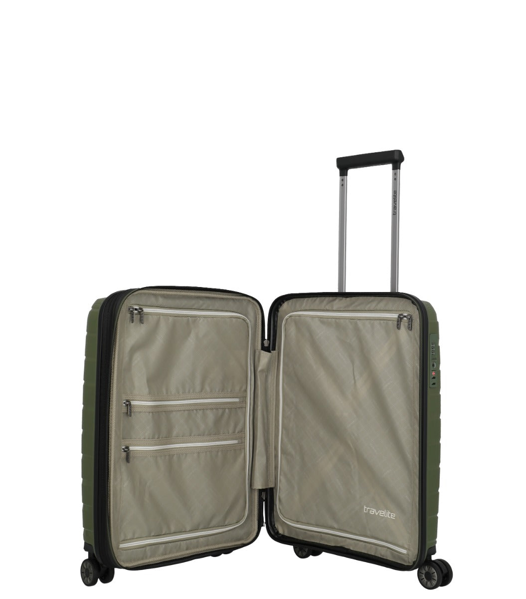 Denne kabinekuffert er med ekspansion. Den kan udvides i bredden fra 43 liter til 50 liter. Det vil sige, at du kan have ekstra meget bagage med.