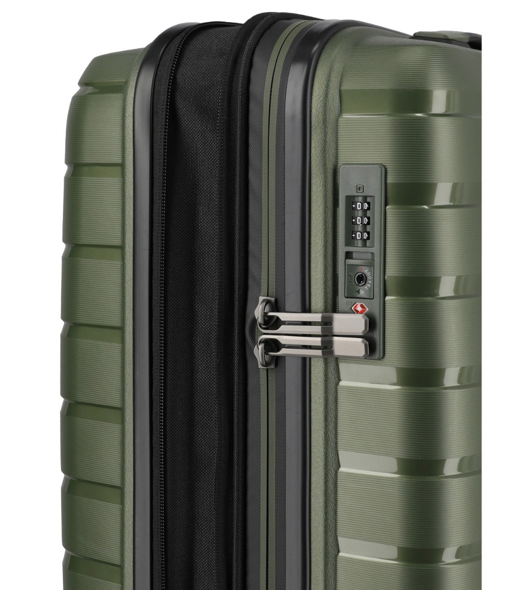 Denne kuffert er fremstillet i polypropylene. Materialet er ikke lige så stærkt som polycarbonat, men derimod rigtig let. Denne type kuffert er perfekt, hvis du vil rejse så let som muligt men samtidig have en holdbar kuffert.