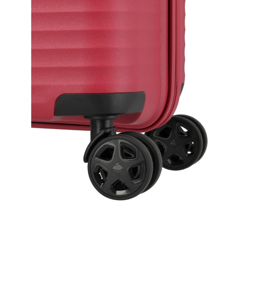 Kufferten er en ægte hardcase fremstillet i robust polypropylen, et materiale der er kendt for at være utroligt let, men samtidig ekstremt slagfast. Det moderne design med de elegante, lodrette striber er ikke kun æstetisk; striberne øger kuffertens strukturelle stabilitet og slagfasthed.