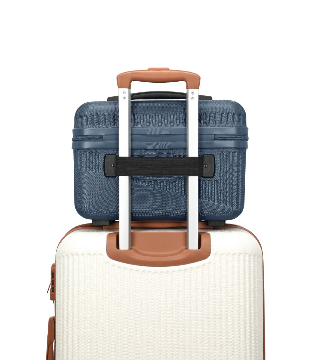 Du kan sætter beautyboxen fast på toppen af din kuffert med stroppen bagpå.