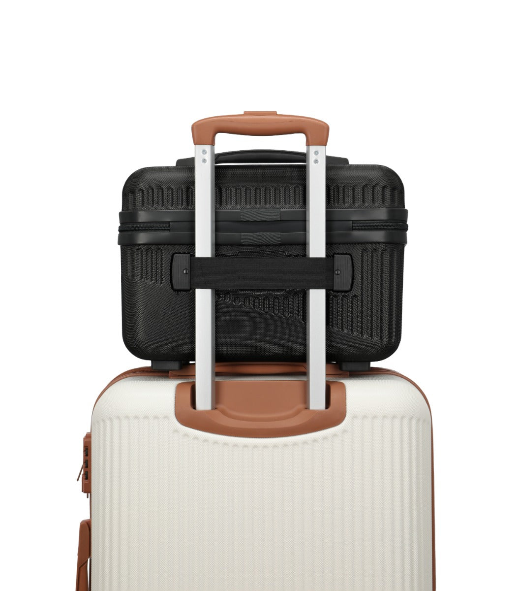 Du kan sætter beautyboxen fast på toppen af din kuffert med stroppen bagpå.