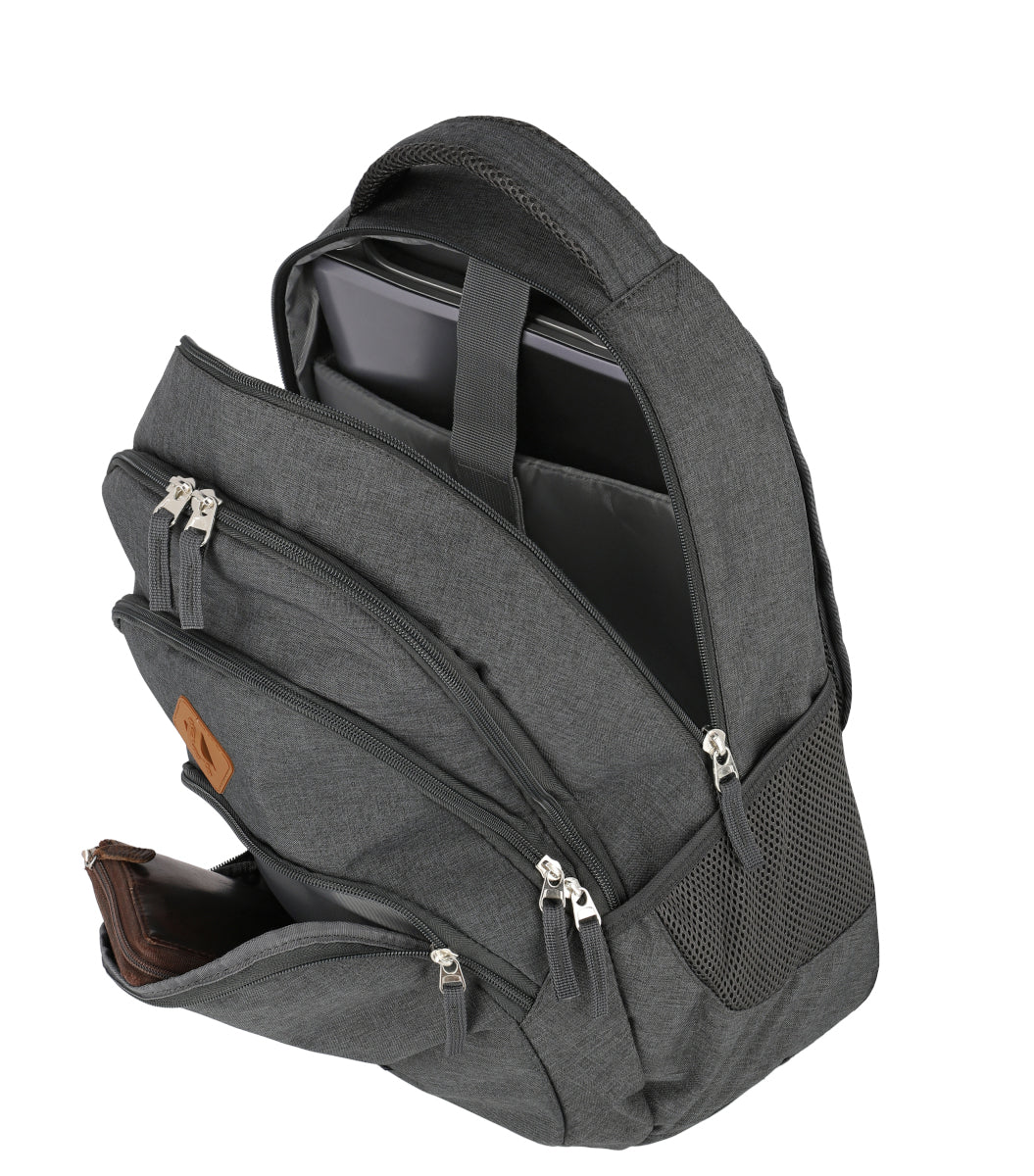 Rygsækken er indrettet med to store rum med lynlås, hvor det bagerste rum kan indeholde en tablet eller computer op til 15" eller maksimalt 37 X 25 X 3 cm. Derudover har rygsækken to frontlommer med lynlås, hvoraf det ene har flere mindre lommer og lynlås rum til organisering af småsager. Desuden har rygsækken to netlommer, en i hver side, til f.eks. vandflasker eller lign.