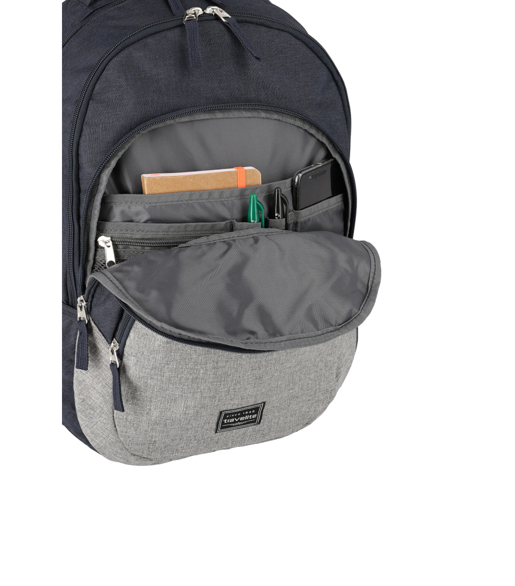 Rygsækken er indrettet med to store rum med lynlås, hvor det bagerste rum kan indeholde en tablet eller computer op til 15" eller maksimalt 37 X 25 X 3 cm. Derudover har rygsækken to frontlommer med lynlås, hvoraf det ene har flere mindre lommer og lynlås rum til organisering af småsager. Desuden har rygsækken to netlommer, en i hver side, til f.eks. vandflasker eller lign.